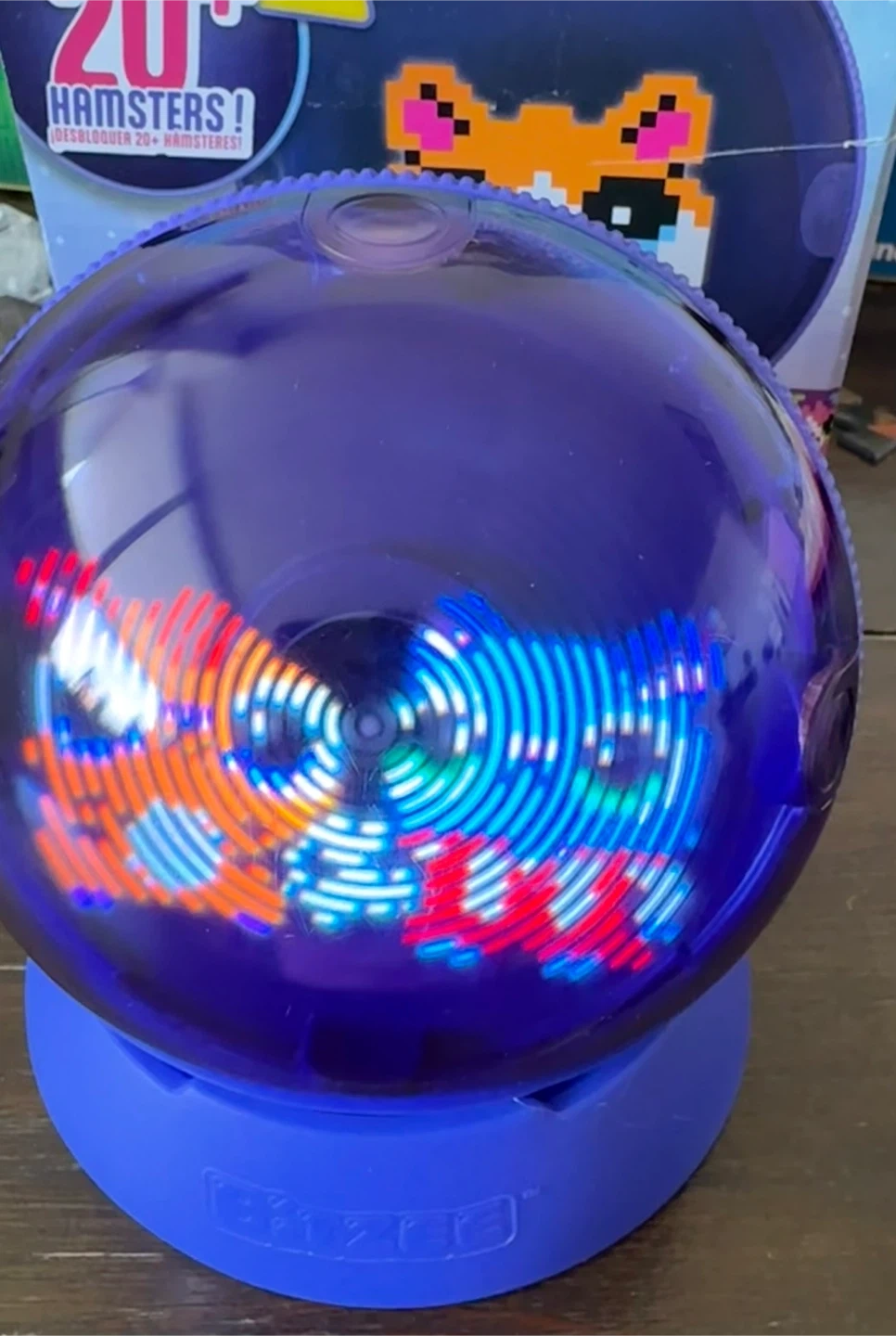 This Bitzee interactive hamster ball toy unlocks over 20 different digital hamsters. It's a fun electronic pet for kids aged 5 and up. It features an illuminated display inside the ball.