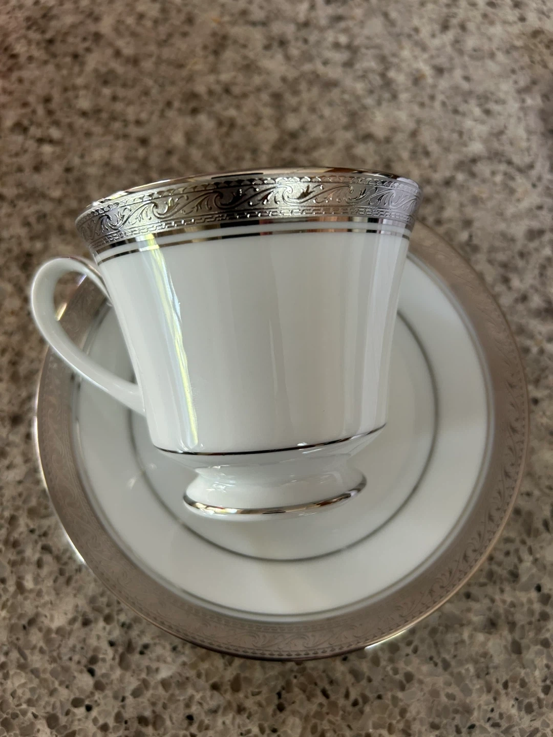 Noritake Legendary Crestwood Platinum Tea Cup & Saucer Set