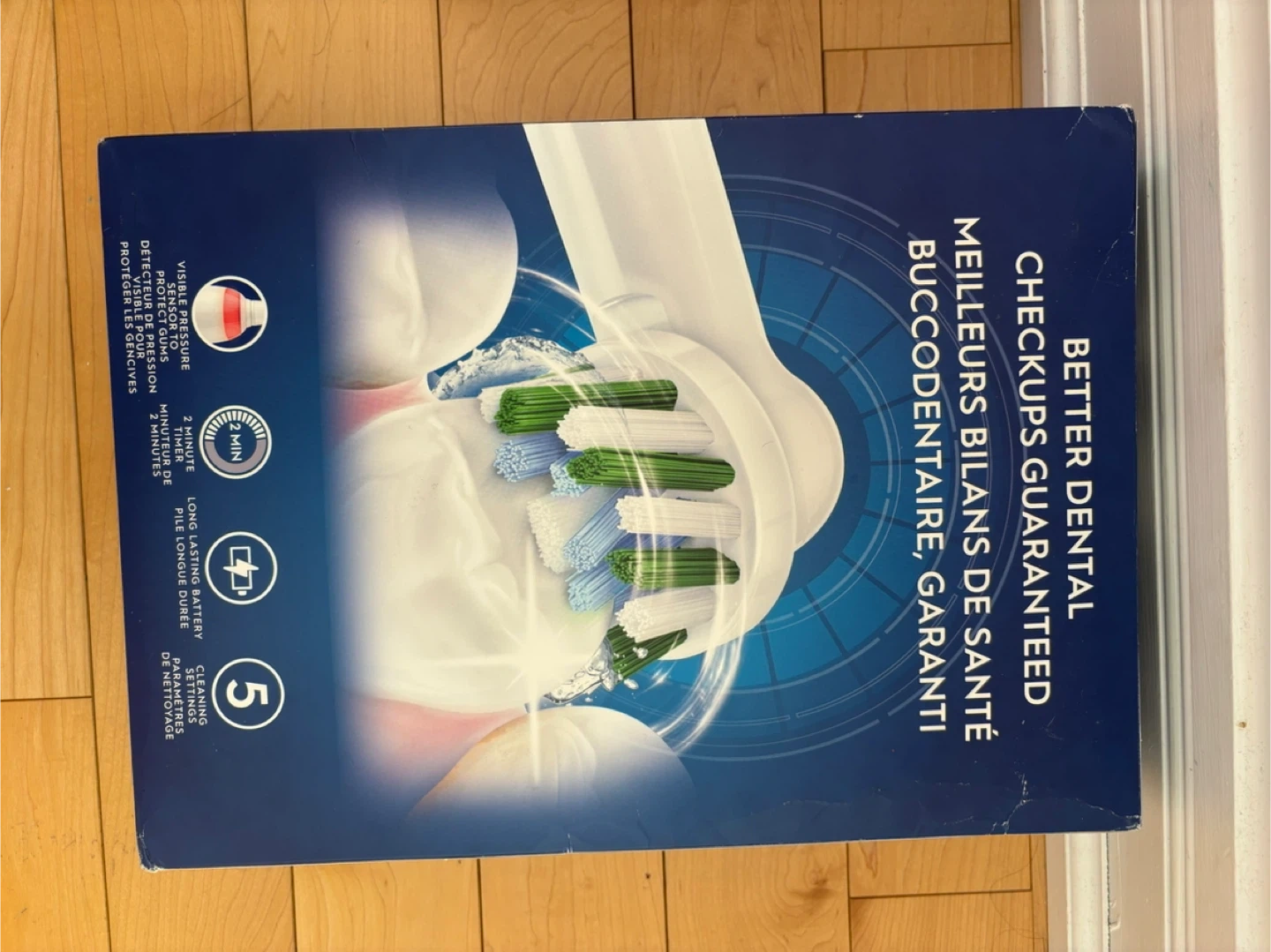 This Oral-B Professional Clean 5000 X rechargeable toothbrush comes with 2 handles and 3 brush heads. It features a visible pressure sensor to protect your gums, a 2-minute timer, long-lasting battery life, and 5 cleaning settings. Also included are 2 travel cases and 2 charging stations. It offers Bluetooth connectivity for a better dental checkup. It is brand new . Box was opened by mistake