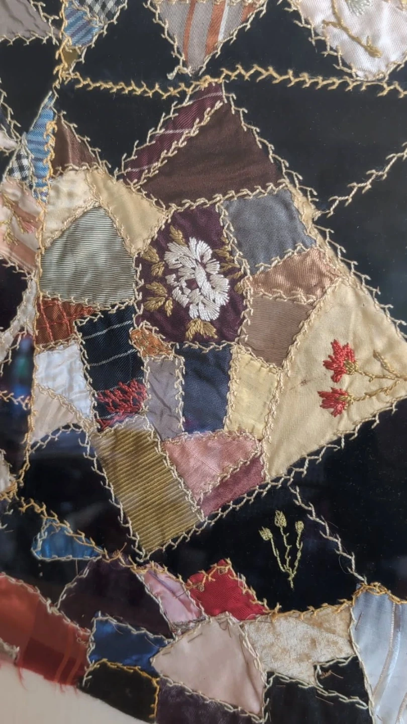 1900s Victorian Crazy Quilt Fragment Professionally Framed!