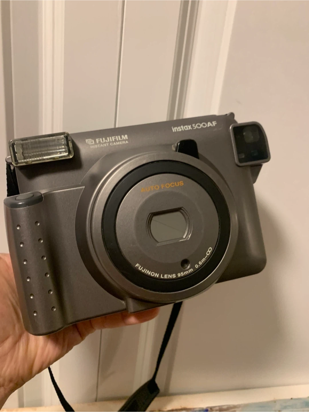 This is a Rare Fujifilm Instax 500AF Medium Wide instant camera, known for its retro charm and unique instant photos. It's in good condition, and ready to capture memories with its classic instant film format. Perfect for parties, events, or just adding a fun twist to your photography.