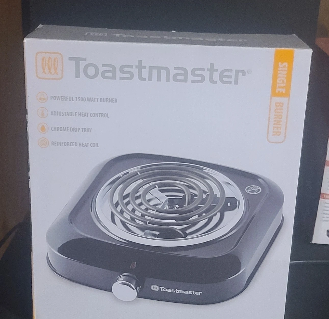 This Toastmaster single burner stove has a powerful 1500-watt burner. It features adjustable heat control, a chrome drip tray, and a reinforced heat coil. It's great for small kitchens or dorm rooms!