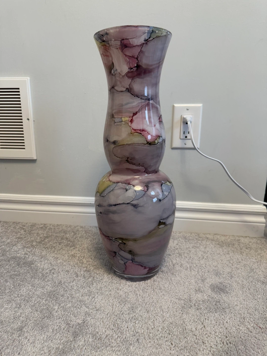 This is a beautiful decorative vase featuring a unique swirl design. It would look great in any room and is sure to add a touch of elegance to your home