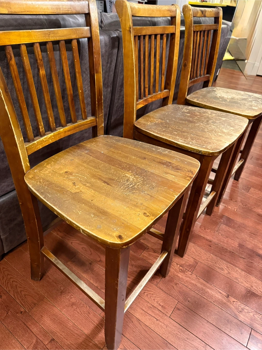 The seats have a beautiful natural wear and character that actually adds to the rustic/farmhouse vibe (easy to sand and refinish if you want them looking brand new)
