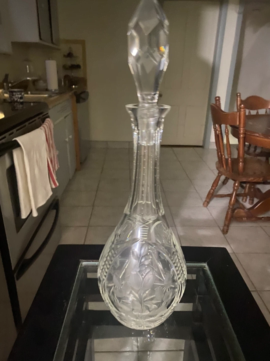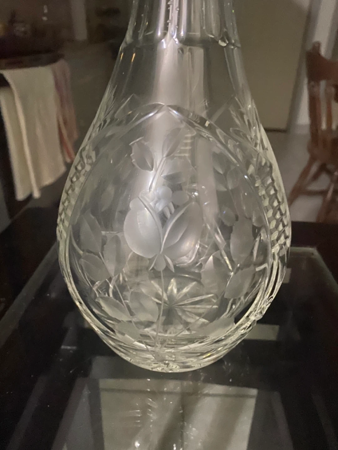 Crystal Decanter with Etched Floral Design