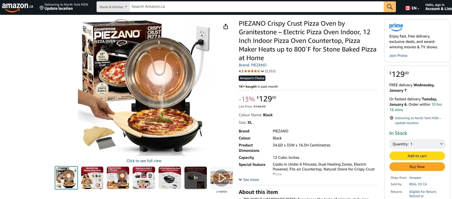 PIEZANO Crispy Crust Pizza Oven by Granitestone – Electric Pizza Oven Indoor, 12 Inch Indoor Pizza Oven Countertop, Pizza Maker Heats up to 800°F for Stone Baked Pizza at Home