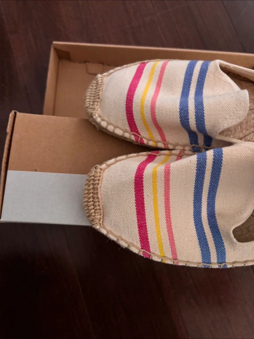 Selling a pair of Soludos espadrilles in size 8! They feature a colourful striped pattern and come with the original box. Never weared after purchased