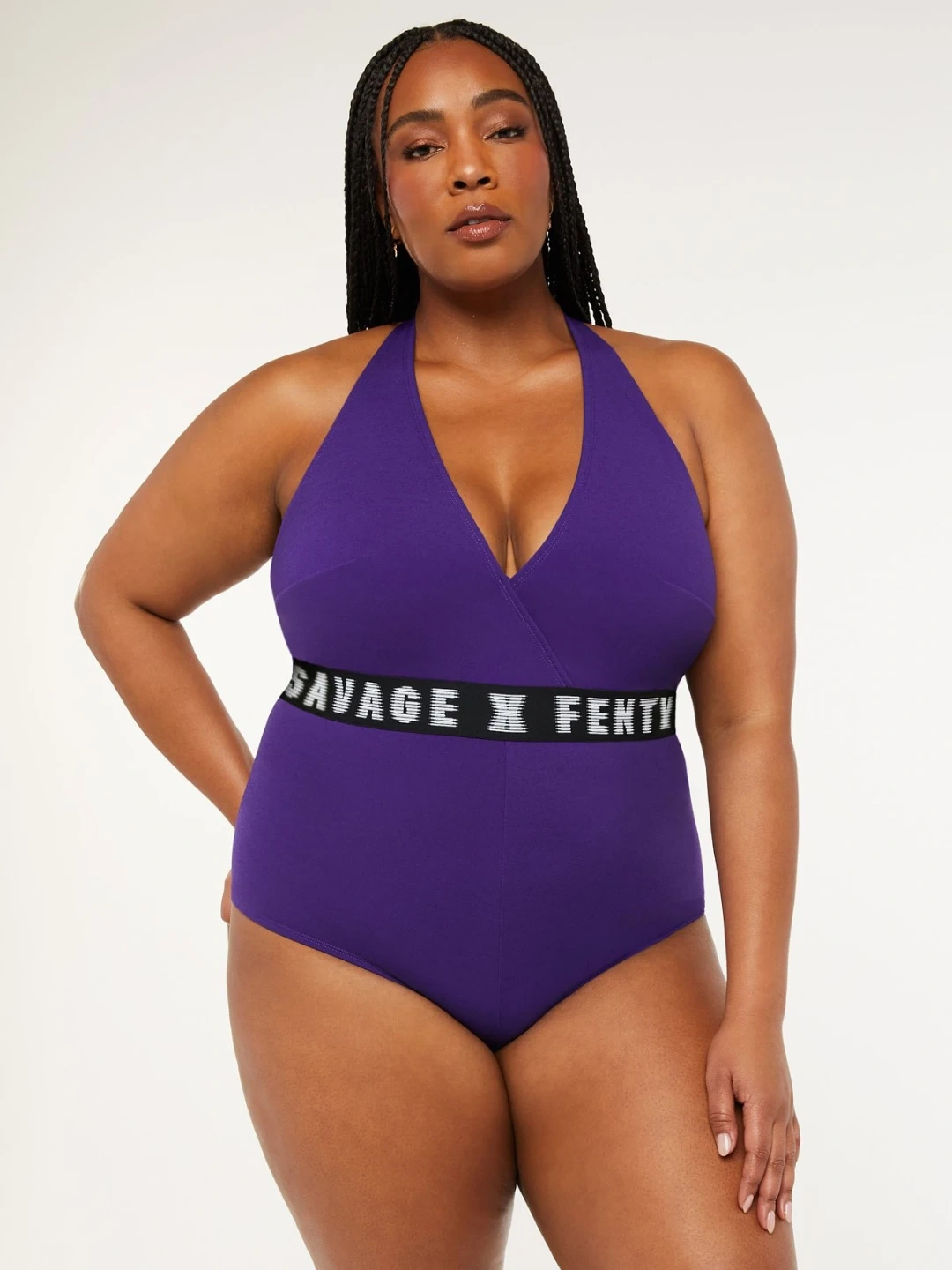 -Savage X Fenty halter romper in a vibrant purple colour.