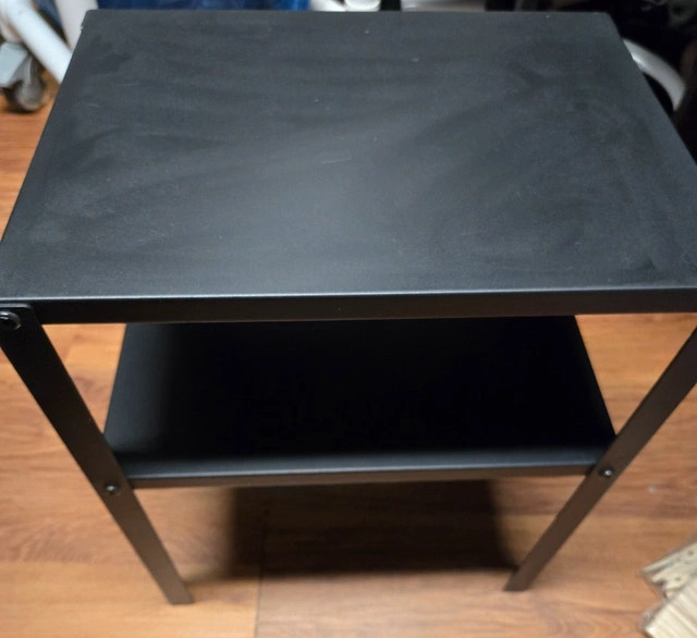 Selling an IKEA KNARREVIK steel-frame side table in black. Compact and sturdy design, perfect for use as a bedside table, small stand, or extra storage shelf. Lightweight yet stable, great for small spaces or minimal setups (26×36×45 cm). Sturdy steel frame, compact size perfect for tight spaces or bedside use, and a two-tier design for extra storage. Simple modern look matches most room styles. Condition: Used - Good. For Sale By: Owner.