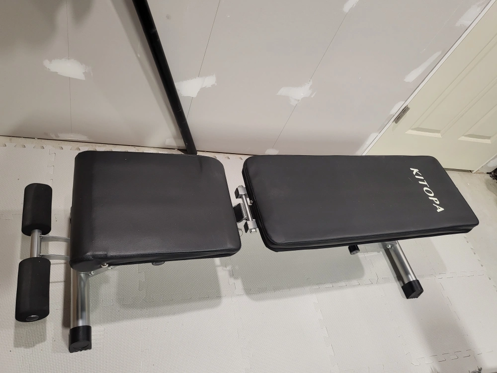 Selling a KITOPA adjustable weight bench in great condition! It's perfect for home workouts and can be adjusted to different angles. The bench is sturdy and comfortable, making it ideal for various exercises.