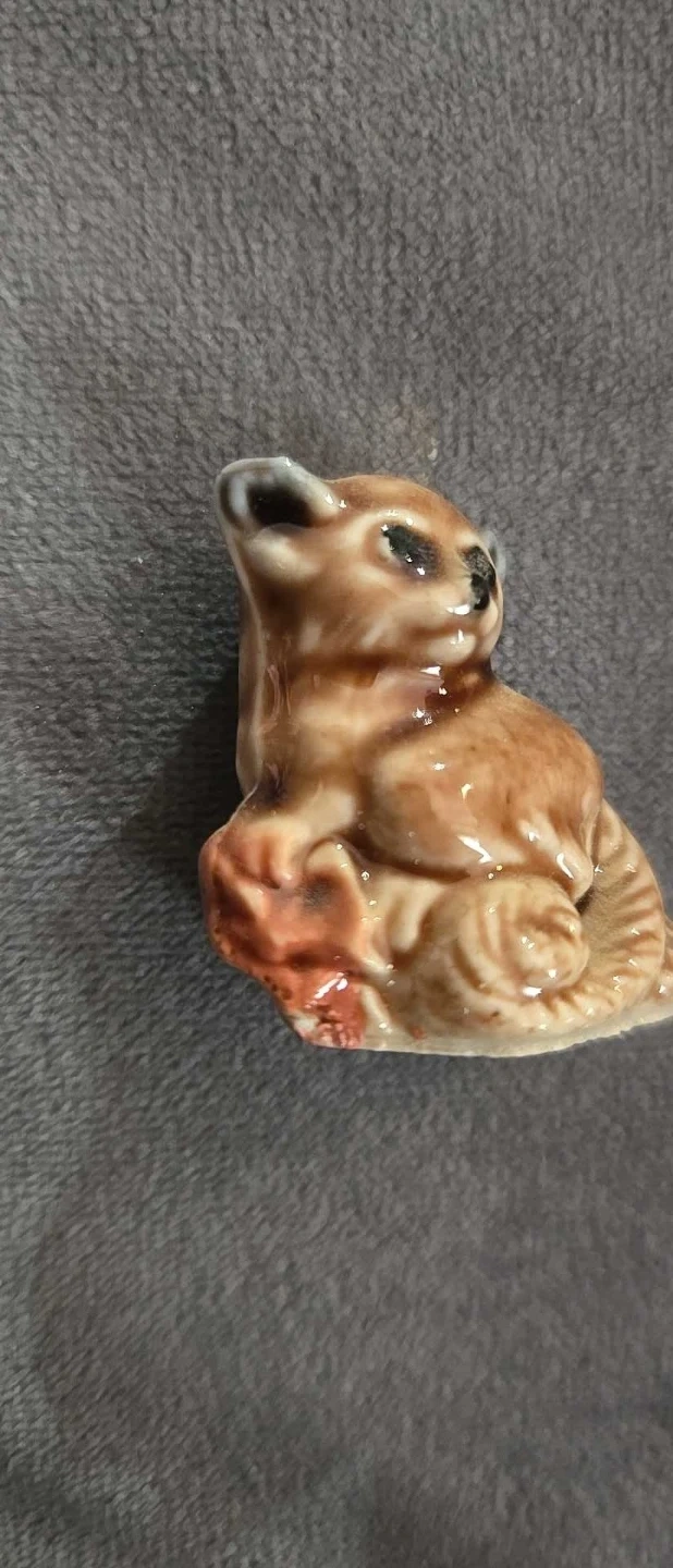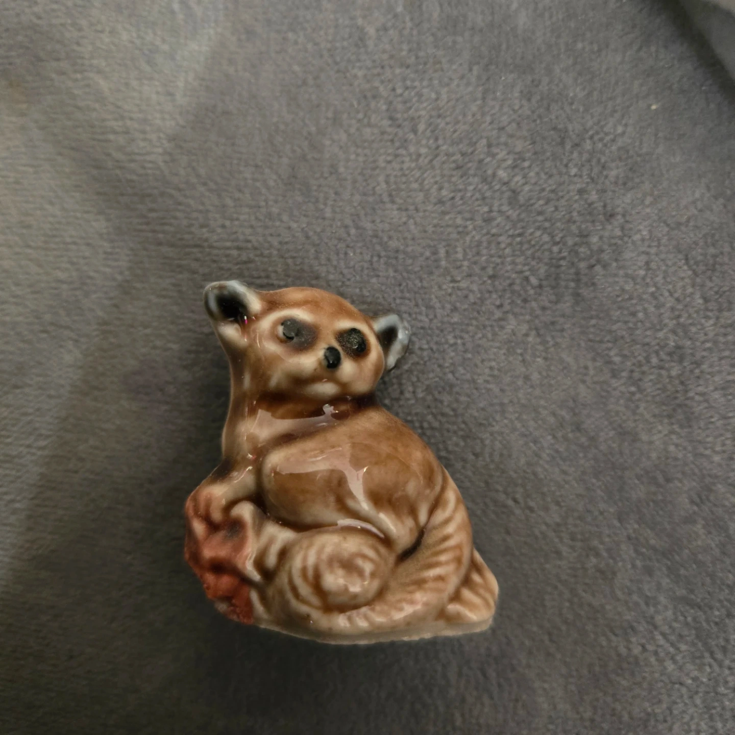 This is a cute ceramic figurine of a small animal, possibly a lemur or similar creature. It's a small decorative piece, made of glazed ceramic. It'll look charming on a shelf or desk.
