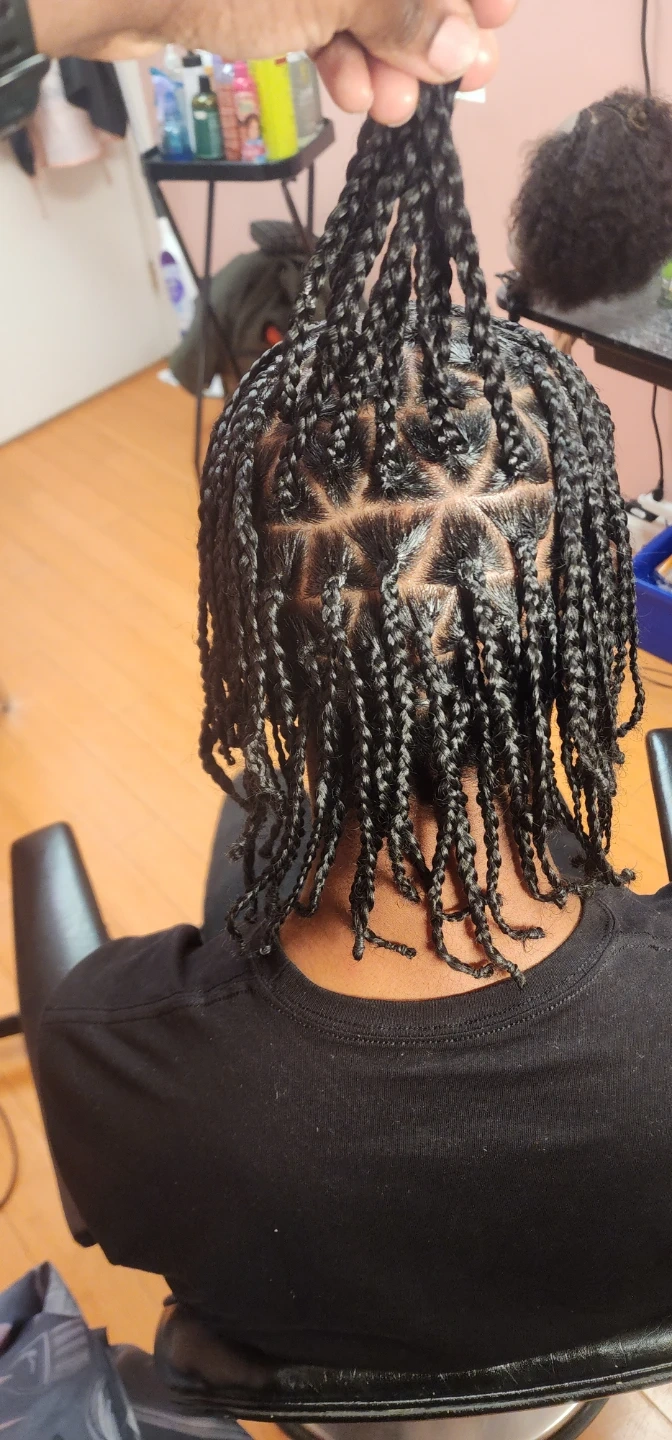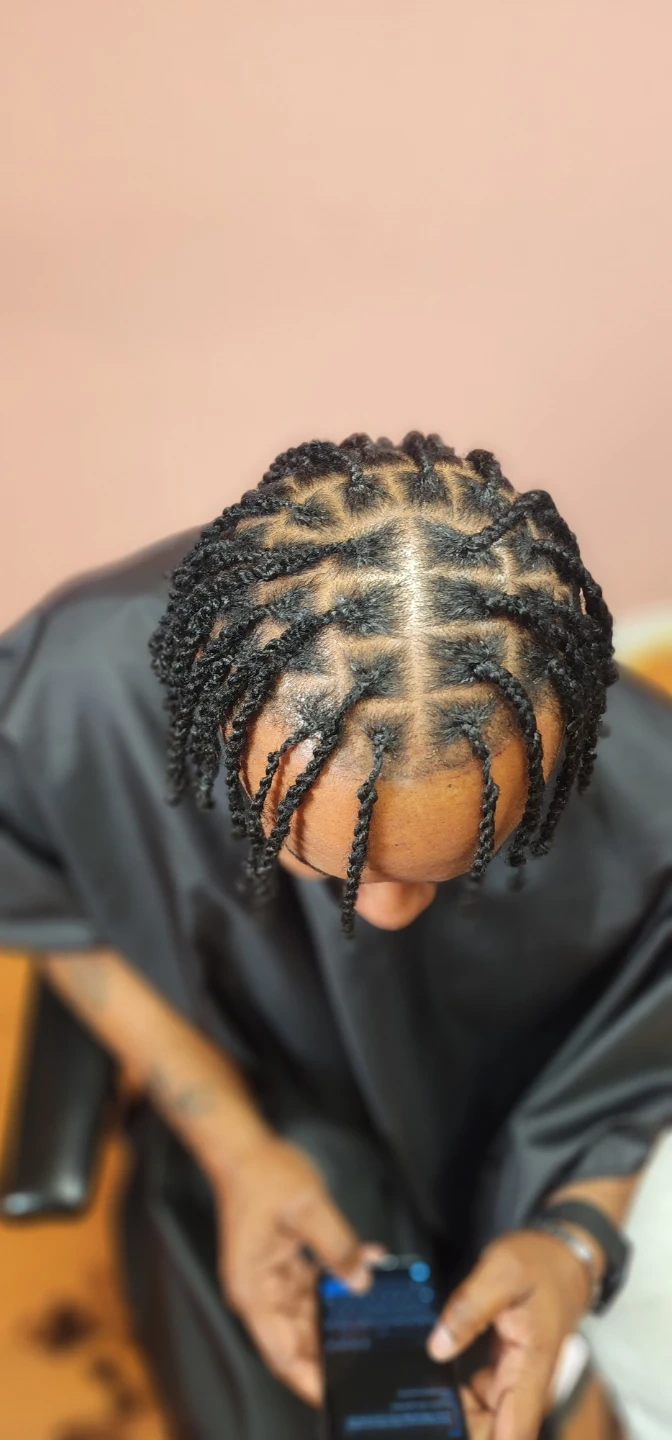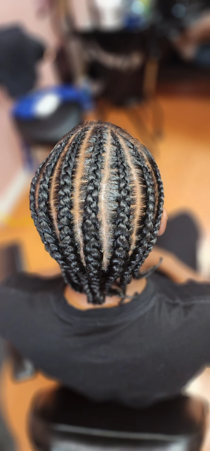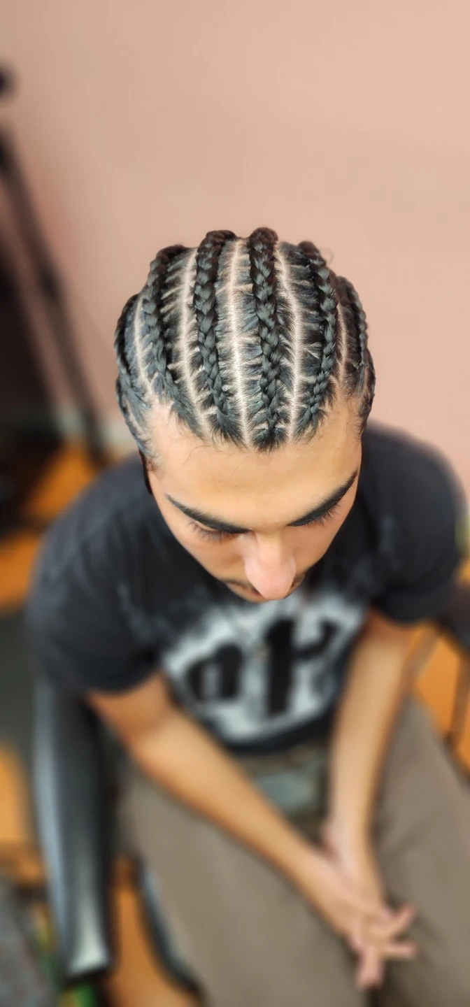 Freshly styled cornrows.This braiding service provides a neat and stylish look. Great for maintaining a sharp appearance for weeks!
