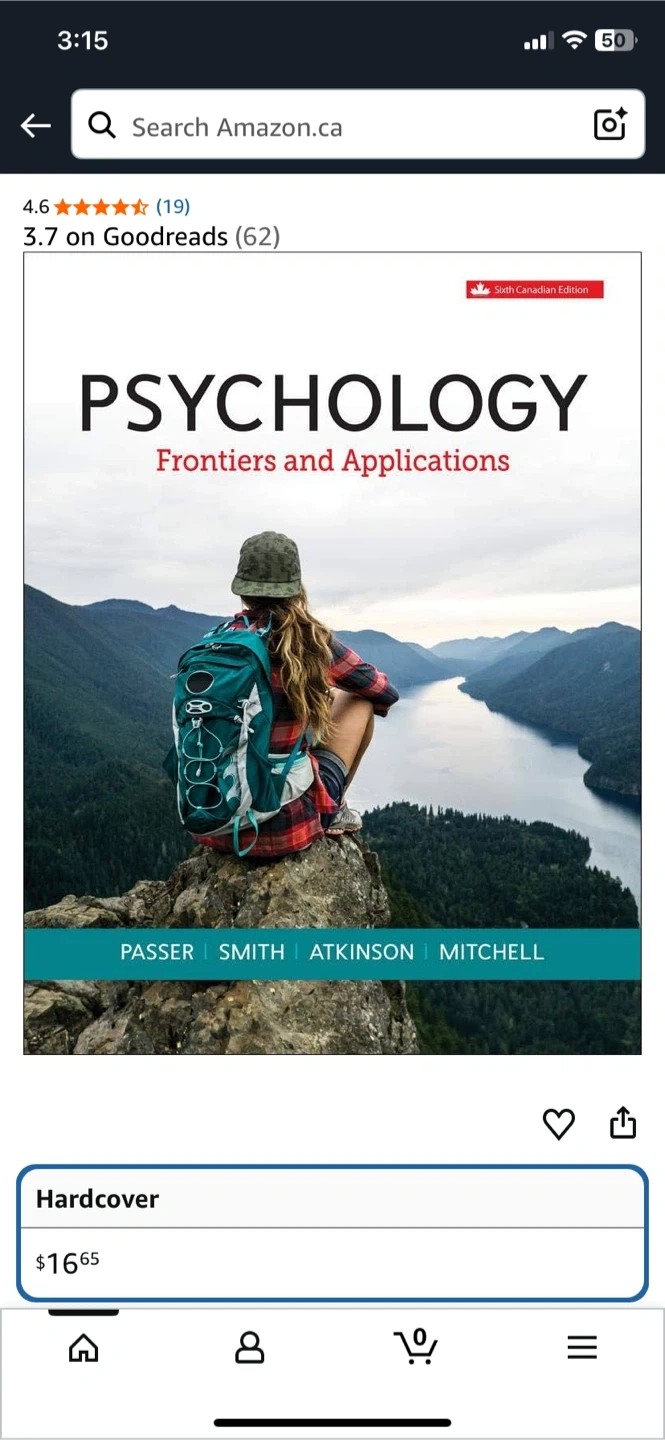 This textbook covers "Psychology: Frontiers and Applications" in its Sixth Canadian Edition. It's a hardcover book.