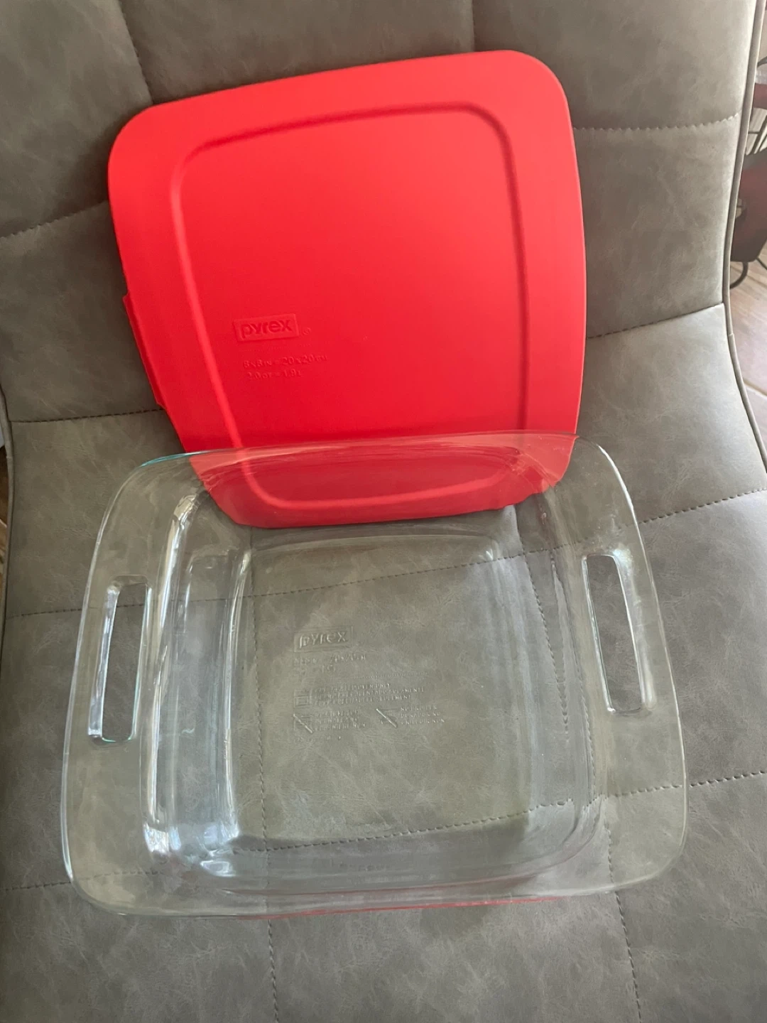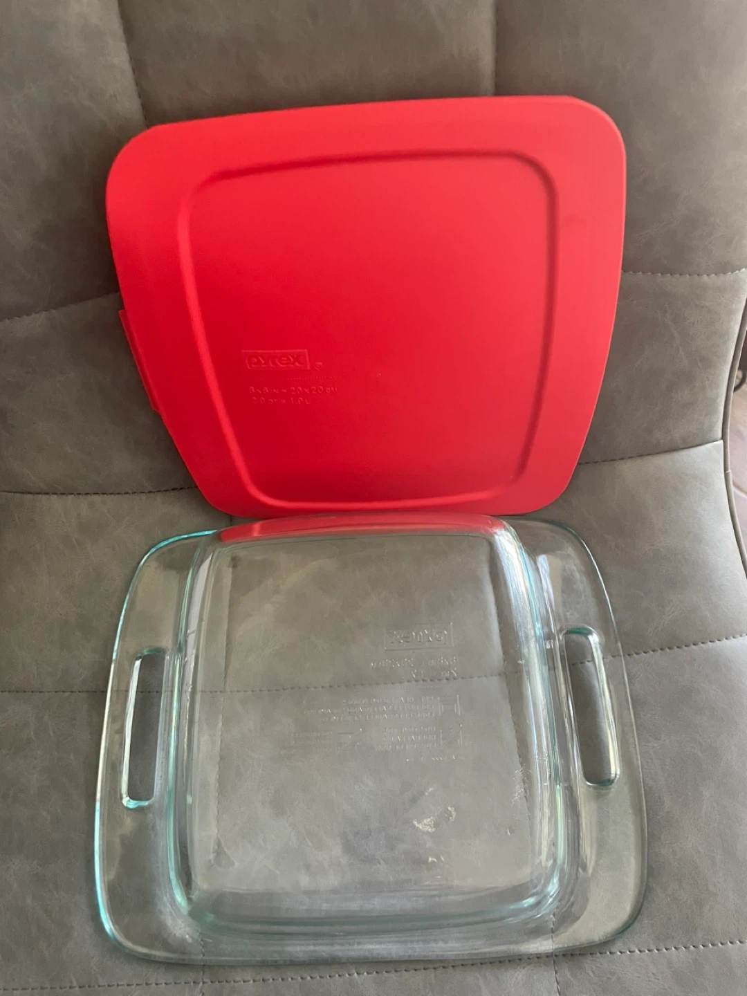 Selling a Pyrex Easy Grab 8-inch square baking dish with a red lid! It's in great shape and ready for your next baking adventure. The dish is 8x8 inches (20x20 cm) and has a 2.0 qt (1.9 L) capacity. Perfect for casseroles, brownies, or whatever you're craving. Excellent condition. Pick up is Jane and Lawrence in North York. If AD is up, item is available. First come. Cash only. Please bring exact cash as no change is available. Message on way to receive address.