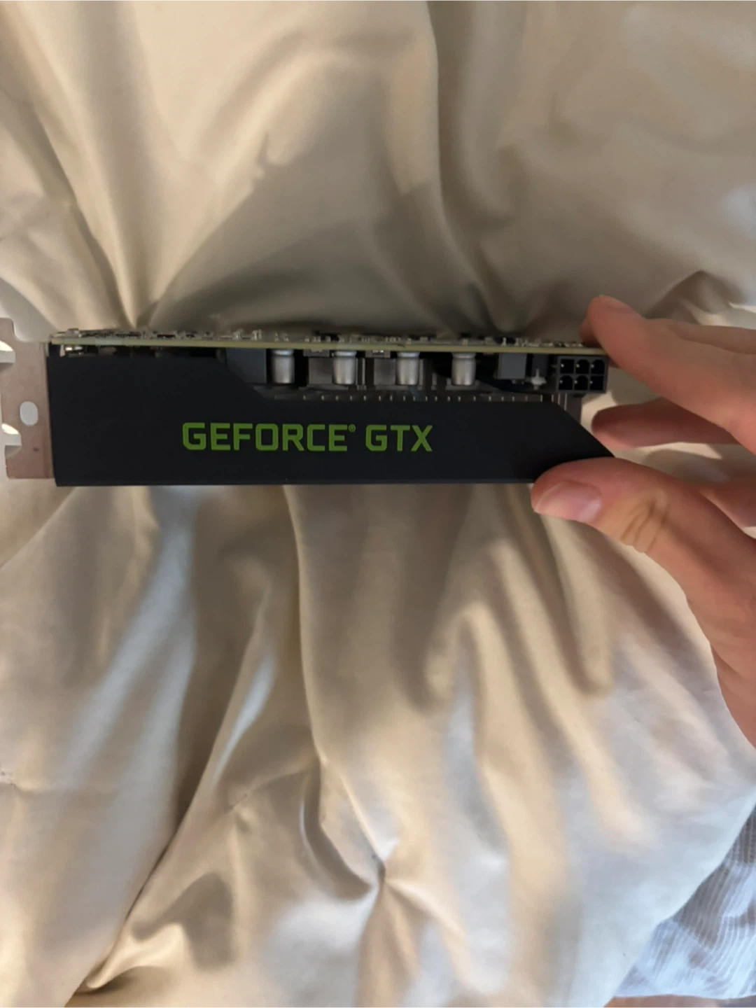 Selling a NVIDIA GeForce GTX graphics card. It's a single fan design. The card includes a DVI port and a DisplayPort output. Can negotiate need gone tho 🤧