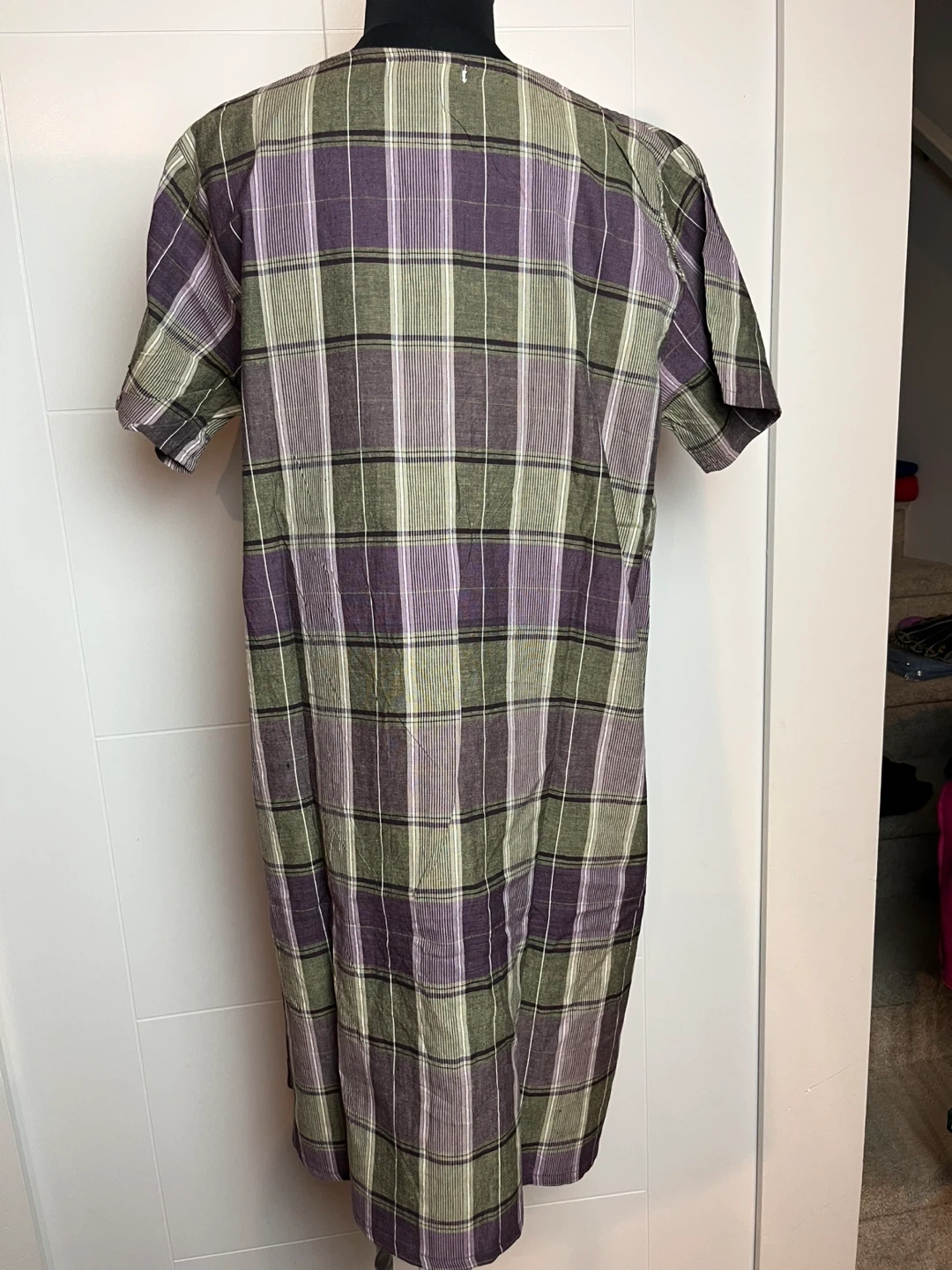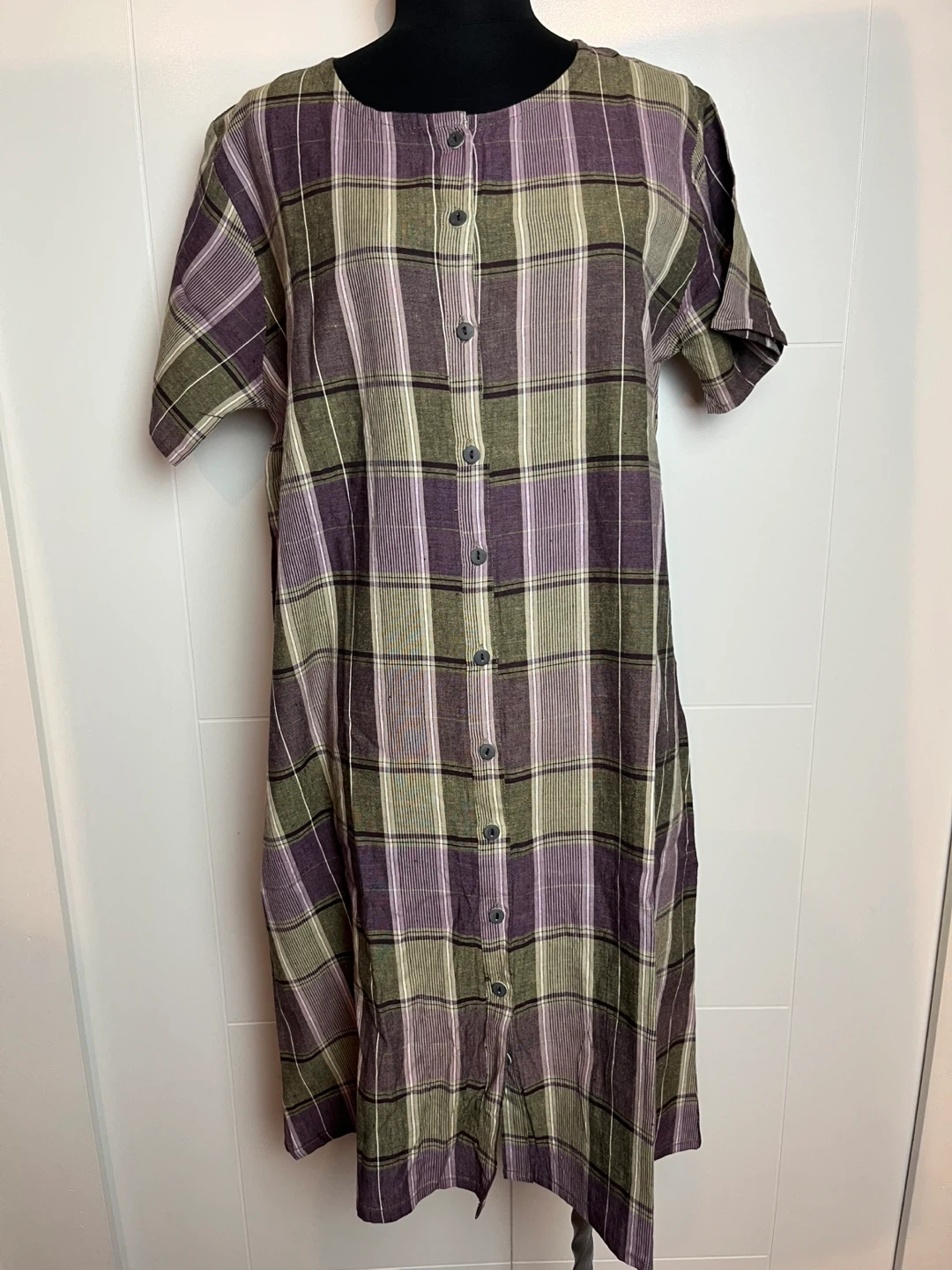 This is a cute, gently used Pyunosso plaid dress. It measures approximately 27 inches across the top and 19 inches across the middle. Perfect for a casual day out!