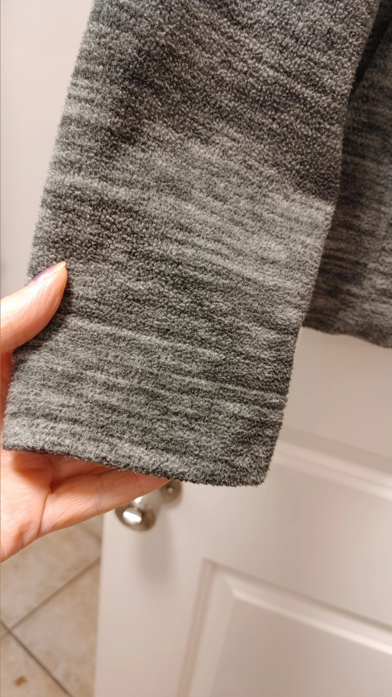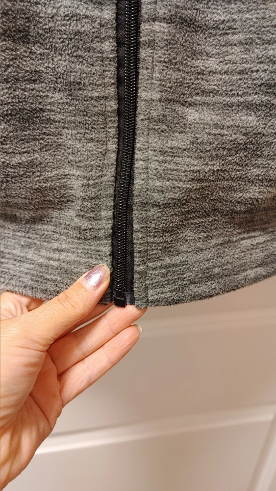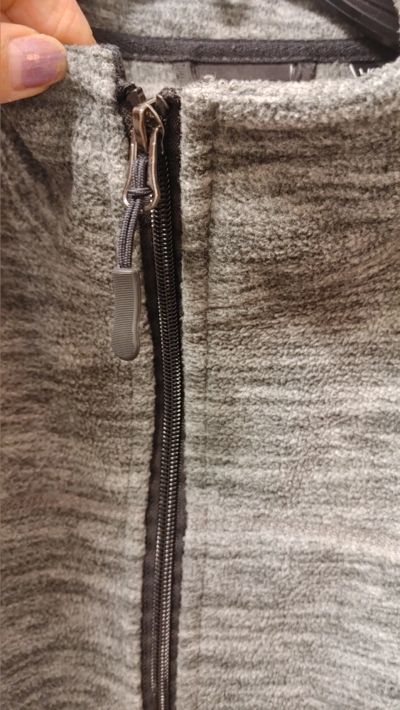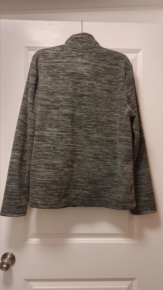 This George brand fleece jacket is grey with a marled texture. It features a full zip closure and two front pockets. It's a size large.