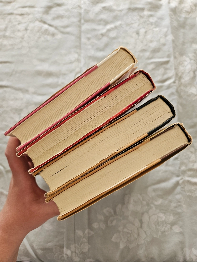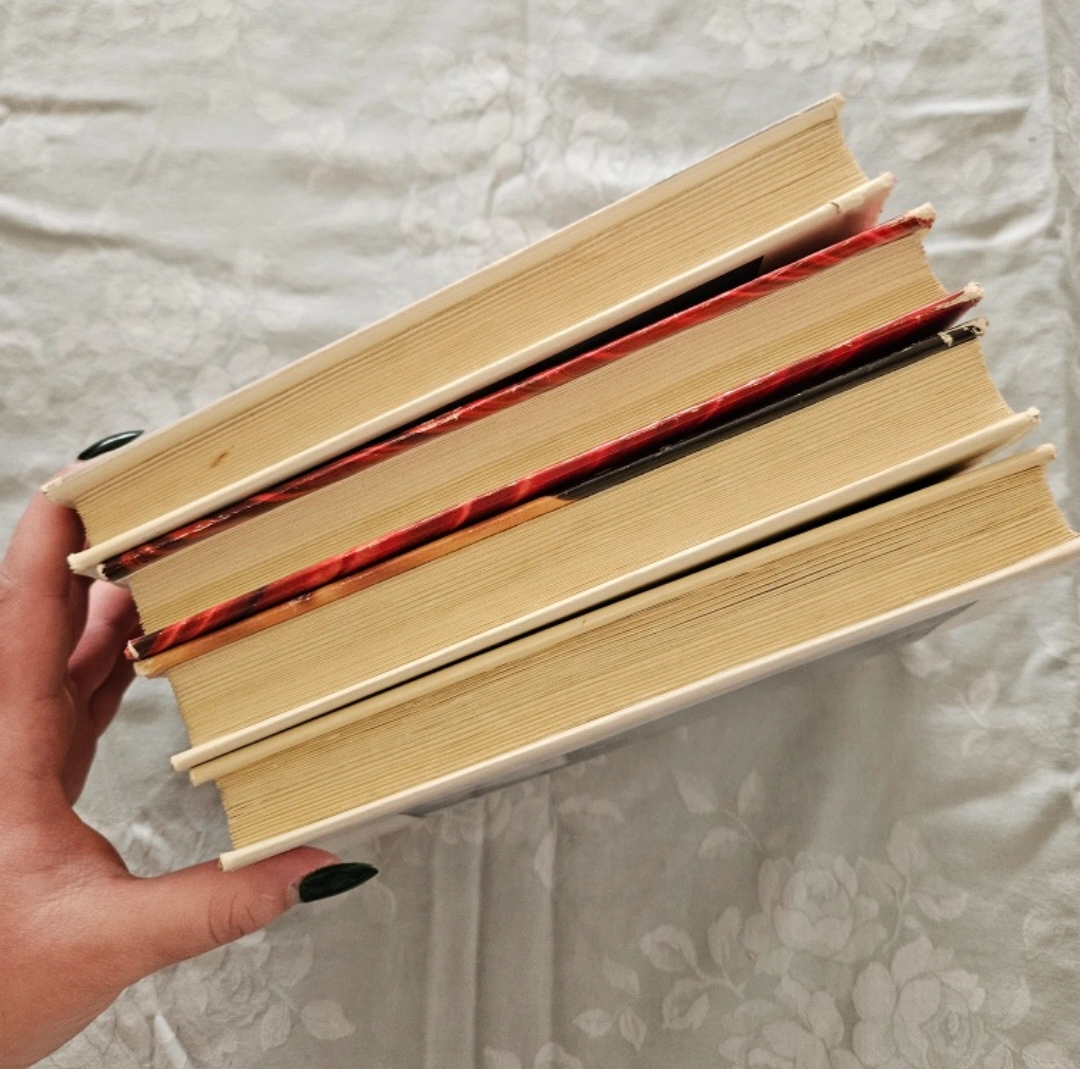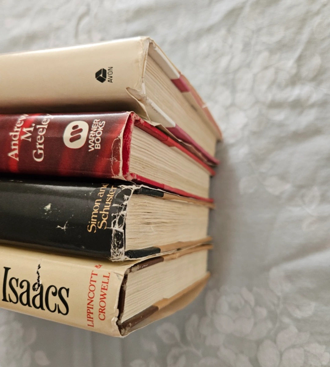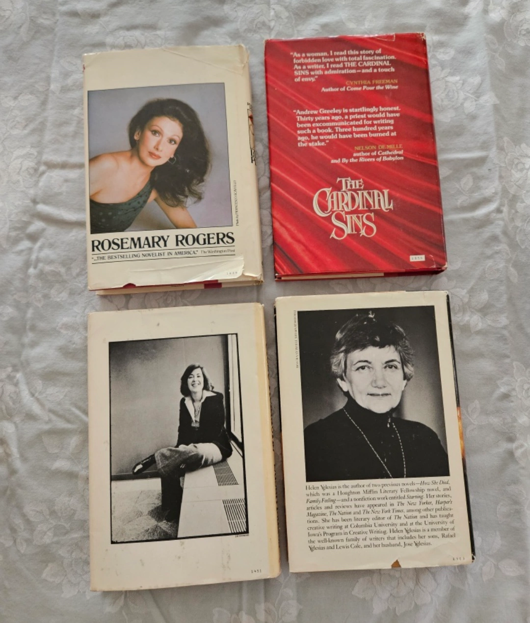 Four used hardcover novels. Titles include Love Play by Rosemary Rogers, The Cardinal Sins by Andrew M. Greeley, Close Relations by Susan Isaacs, and Sweetsir by Helen Iglesias. Dust covers show some wear, but the books are in good condition.