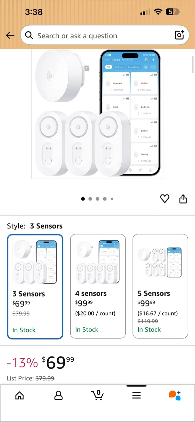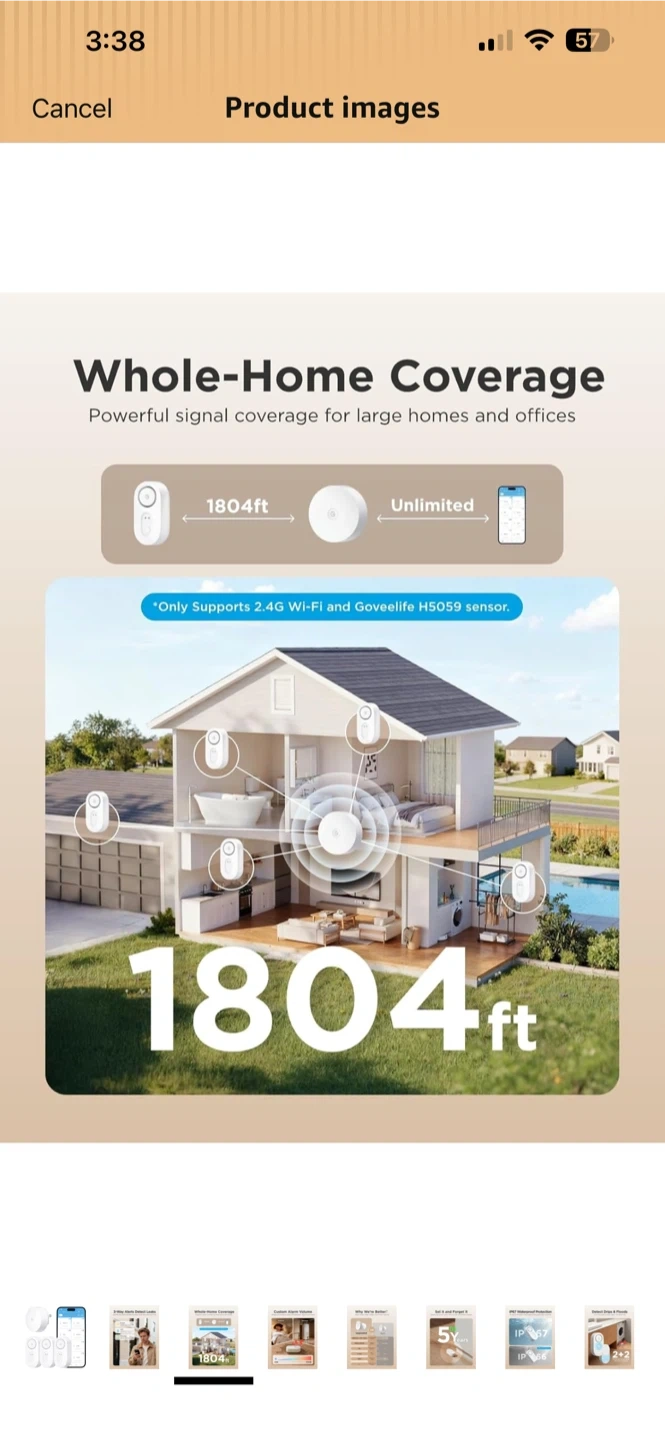This GoveeLife water leak detector offers whole-home coverage with an 1804ft range. It sends SMS, email, and app alerts to notify you of leaks anywhere. The alarm volume is customizable from 0dB to 105dB, and it has a 5-year battery life.