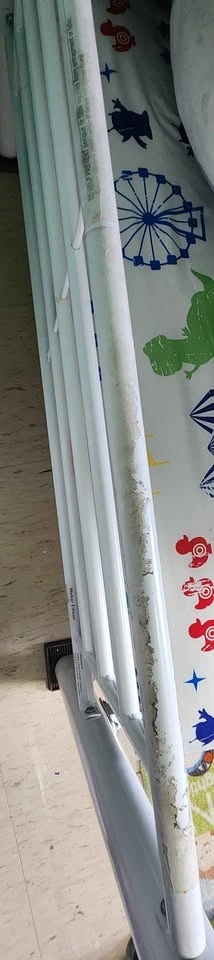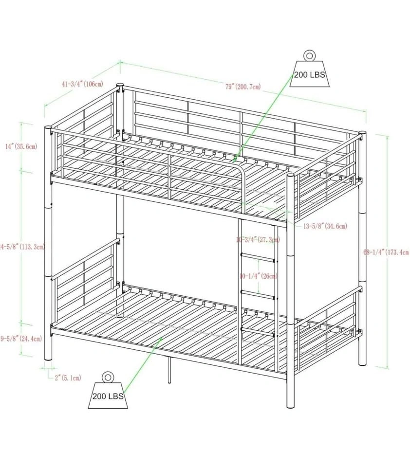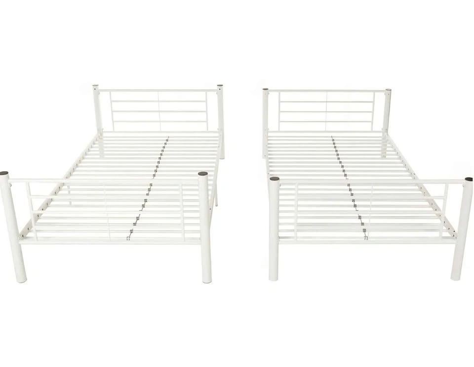 Metal twin over twin bunk bed. Less then a year old. Sticker peeled on one headboard bar (picture shown). Paid $500. Beds can be separated and used as 2 single beds as well. ****Mattresses NOT included. Pick up required.