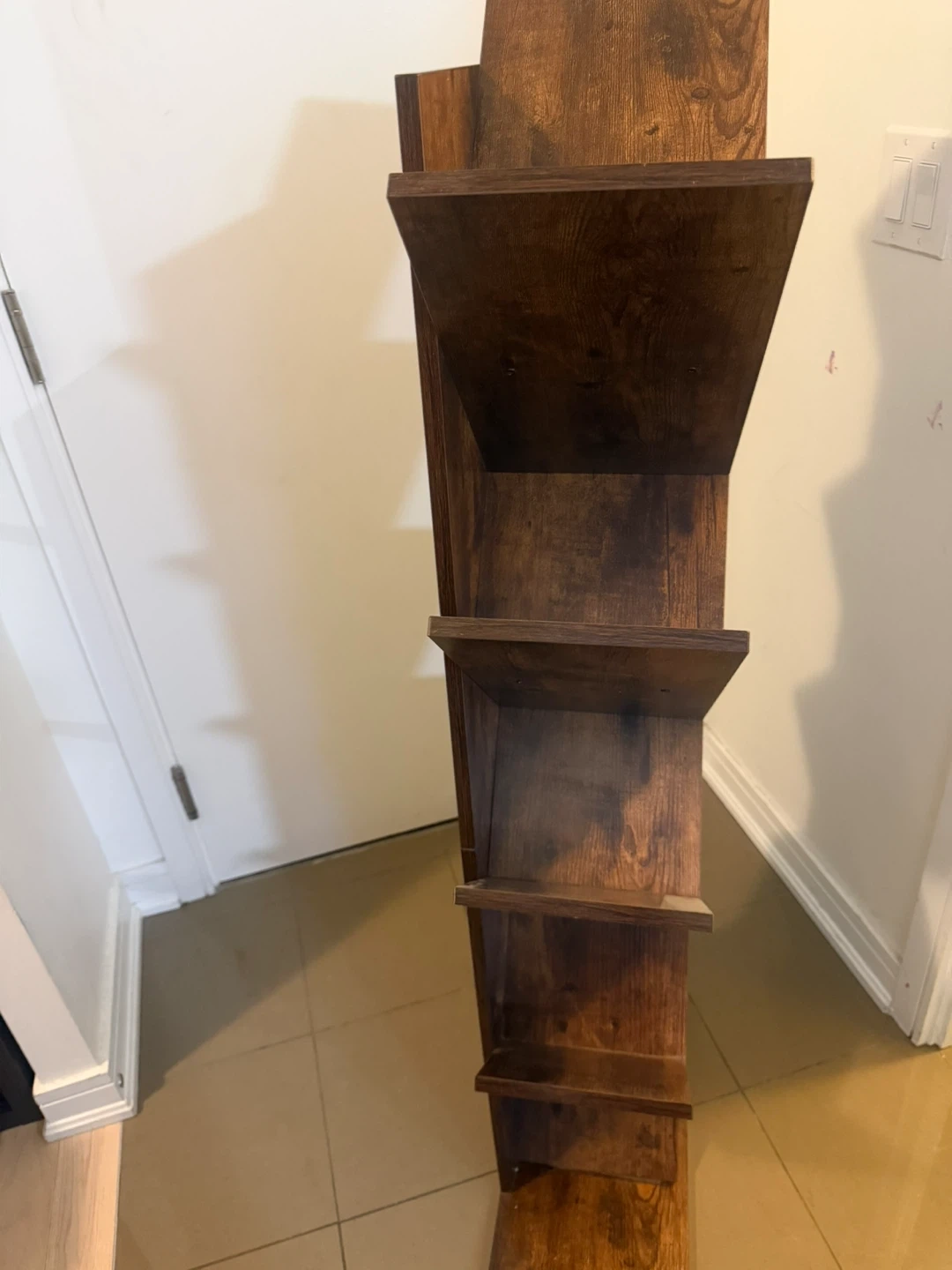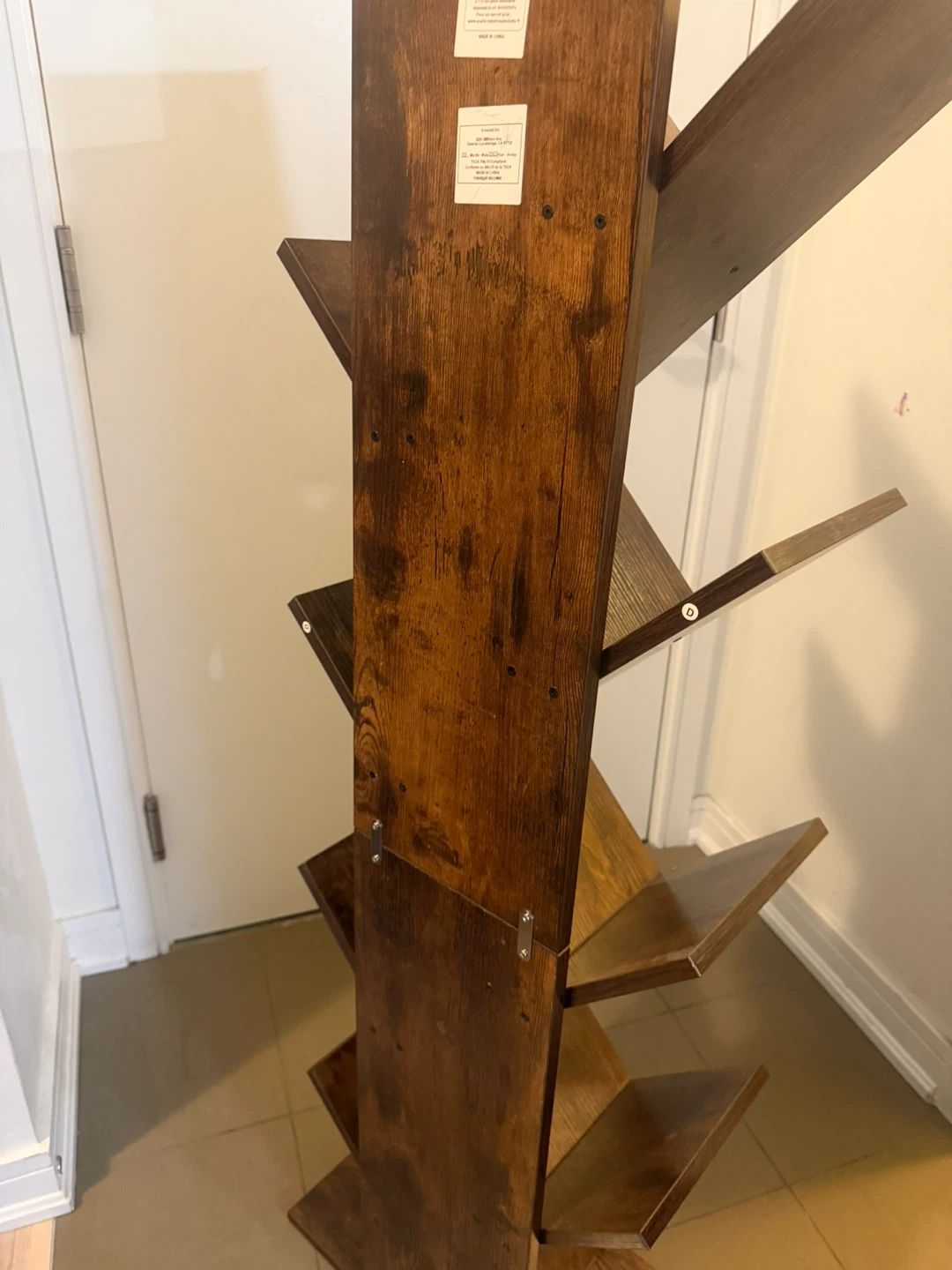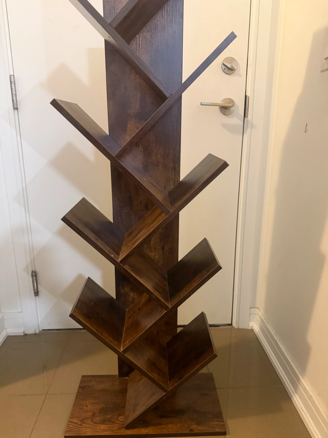 This VASAGLE bookshelf has a unique tree-like design. It's made from particleboard with a wood grain finish. Multiple shelves offer storage for books or decor. It's a stylish way to organize your space!