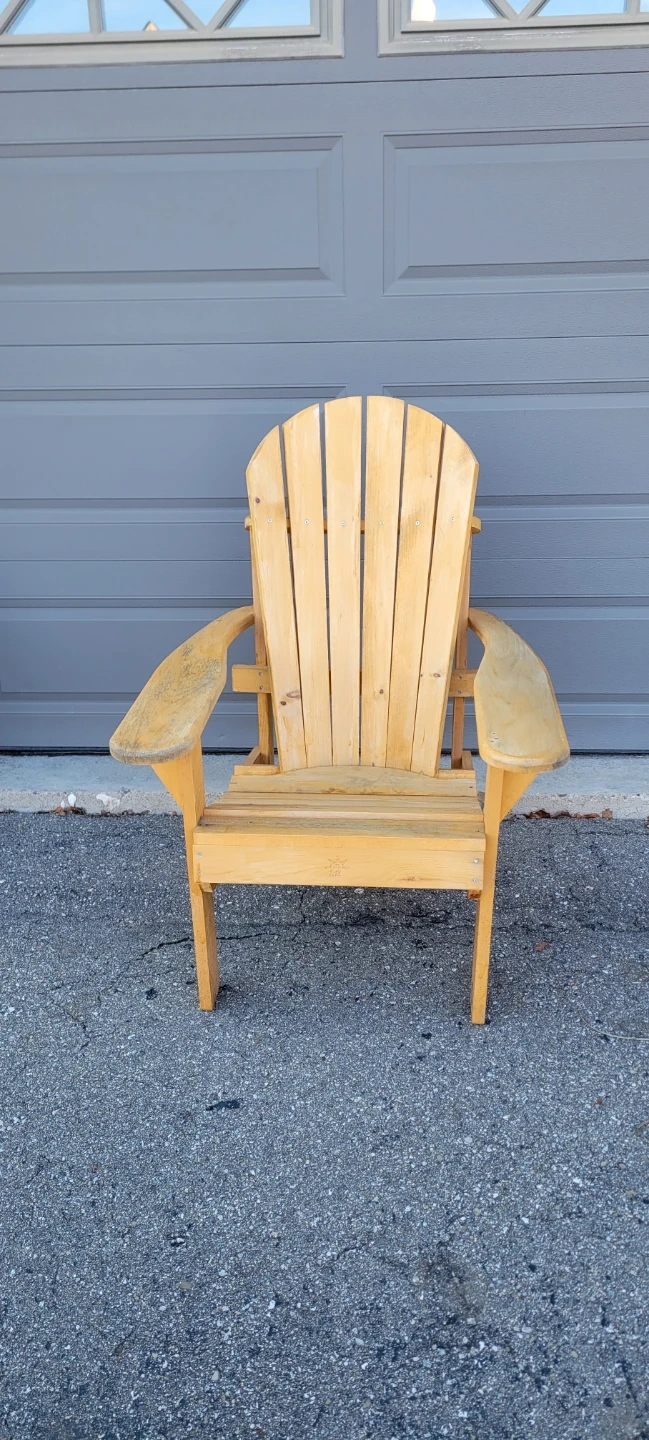 I'm selling an upright Muskoka chair. I stained each piece before assembly. I also glued the pieces together before installing the screws (makes it more solid and last longer). I bought this at the end of last season and stored it in my garage over the winter. We decided to purchase the lounge version instead.