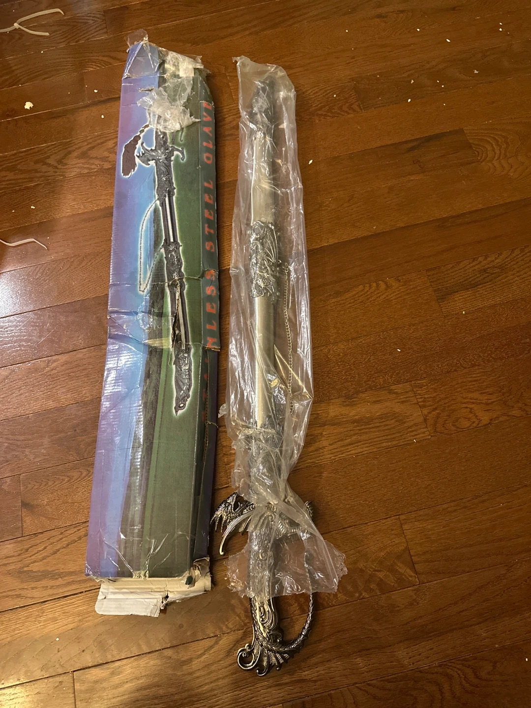 Selling a stainless steel Olav sword. It appears to be in new condition and comes with its original box. A cool item for collectors!