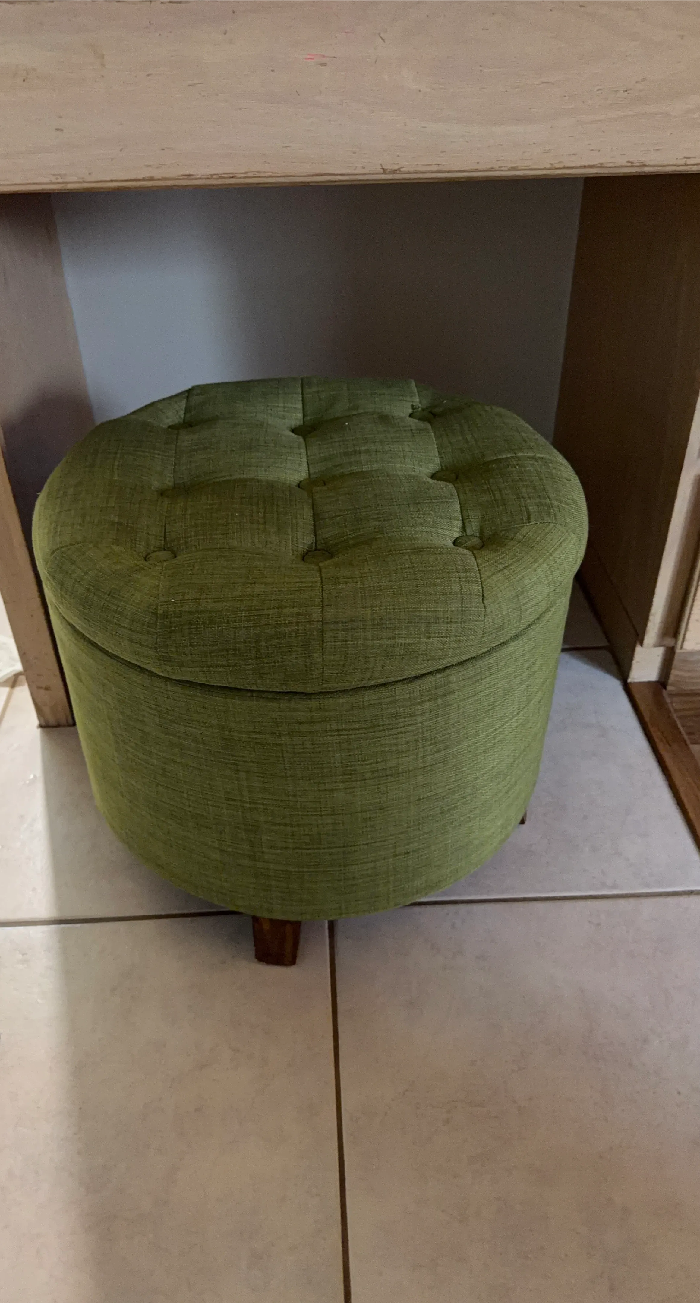 Green Tufted Round Storage Ottoman