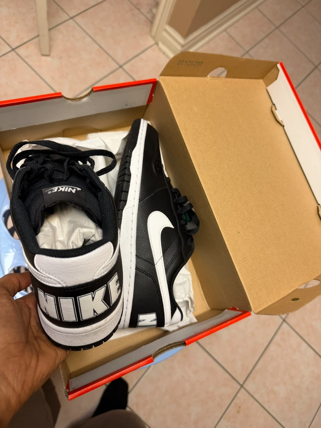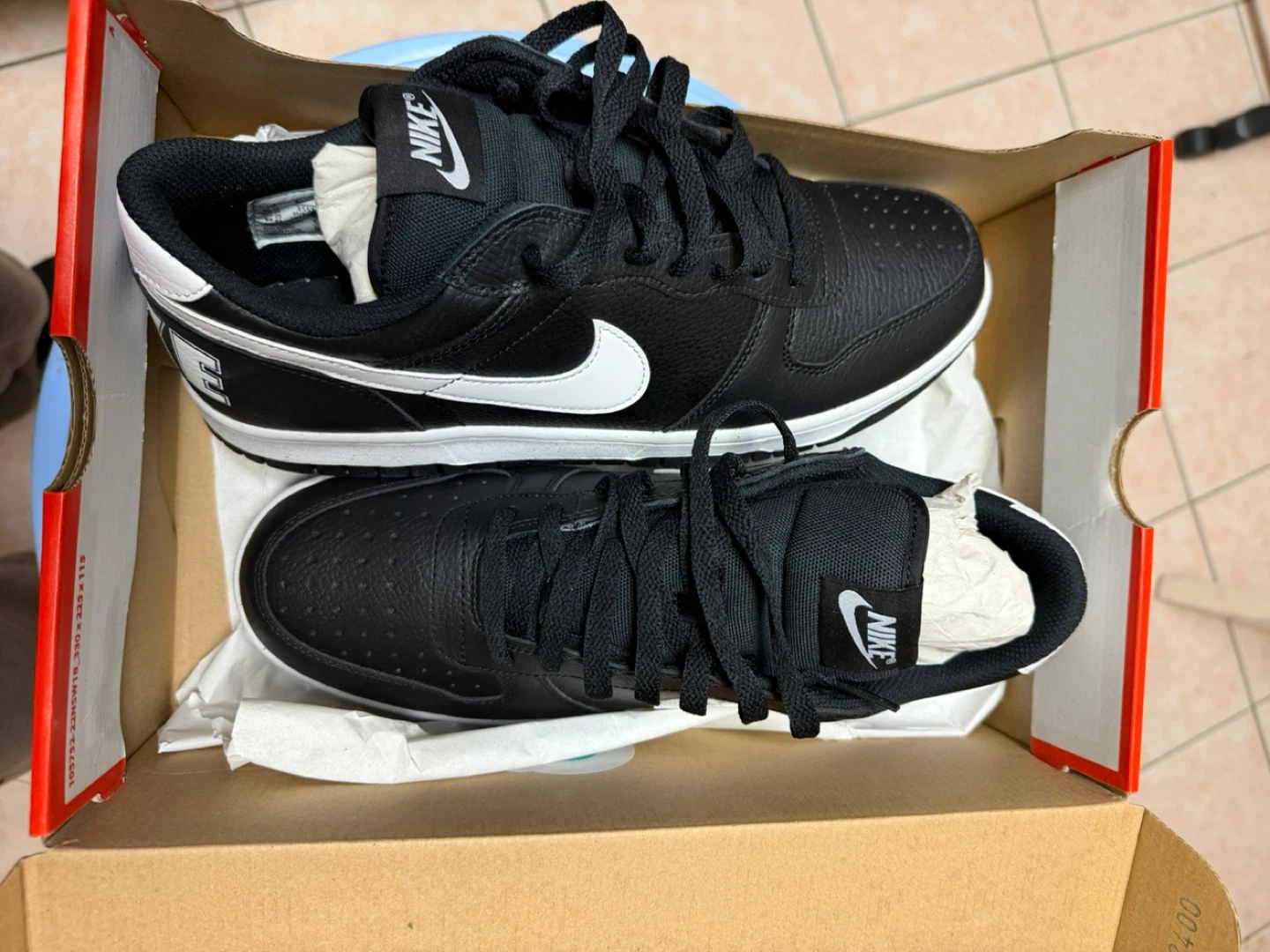 Brand new Nike Court Vision Low men's shoes in black and white. These sneakers feature a durable leather upper and a classic lace-up closure. They're perfect for everyday wear or a casual athletic look.