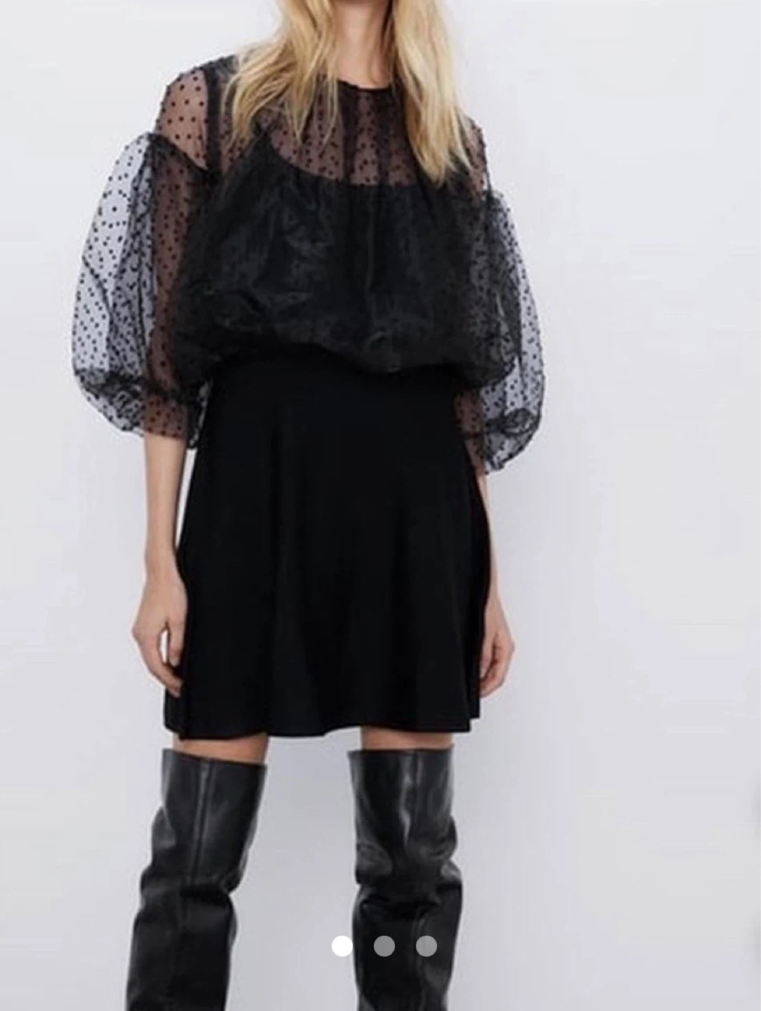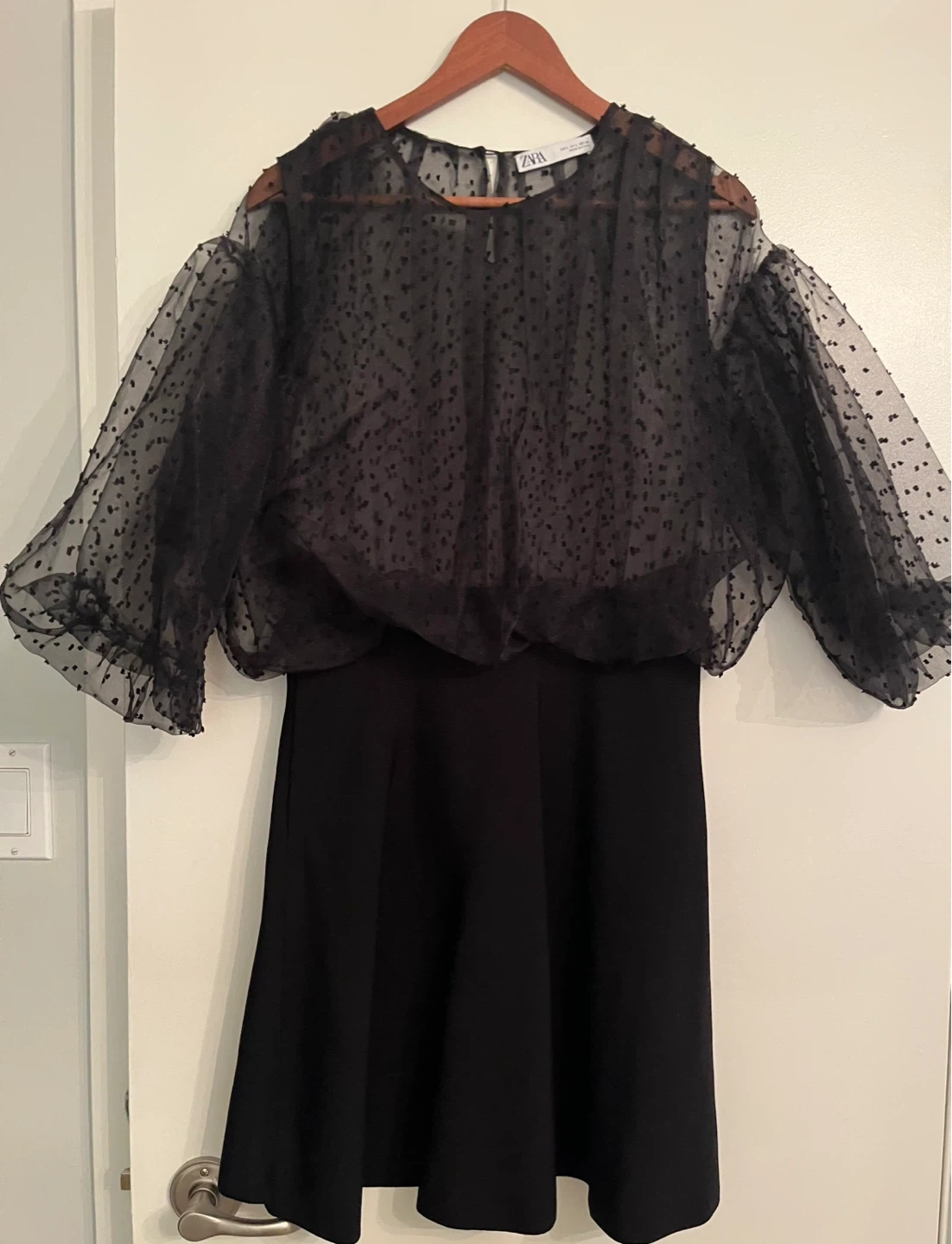 Buy & SellZara Sheer Black Swiss Dot DressZara Sheer Black Swiss Dot Dress$28Excellent condition. Gently worn Pit to pit 20” Length 37”ConditionGoodSizeLargeBrandZaraWHERE TO MEETCheck LocationView MapSELLERTMLeaside Bennington1000+96 reviews0 chats·0 favorites·2 viewsSEND CHAT TO SELLERHi TM! I’m interested in your listing.Hi TM! I’m interested in your listing.Get the Karrot app to chatSign In to chat