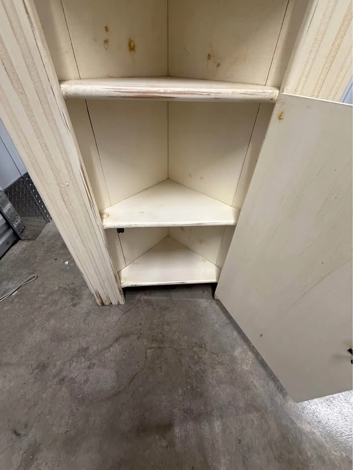 Nice corner shelf with cabinet. Everything is in good condition and structurally sound. 4 shelves with 2 inside cabinet. Measurements: 68” x 28” x 17”. Please view photos for more details.