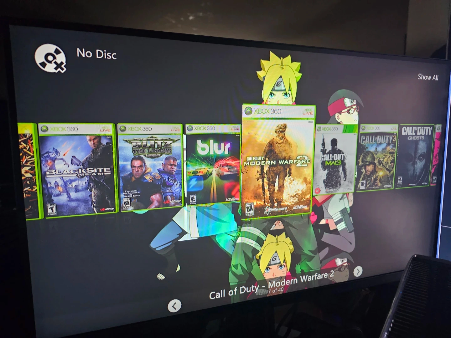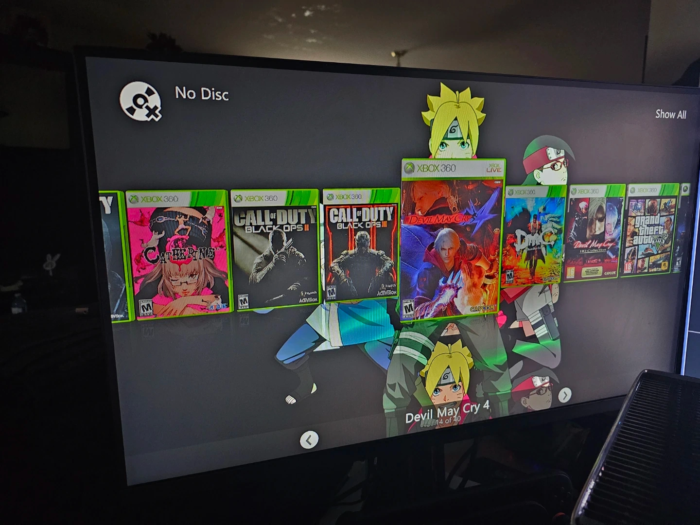 Modded Xbox 360 with controller,mod runs off internal hard drive which automatically boots up when turned on.Has about 26 and 12 Xbox game