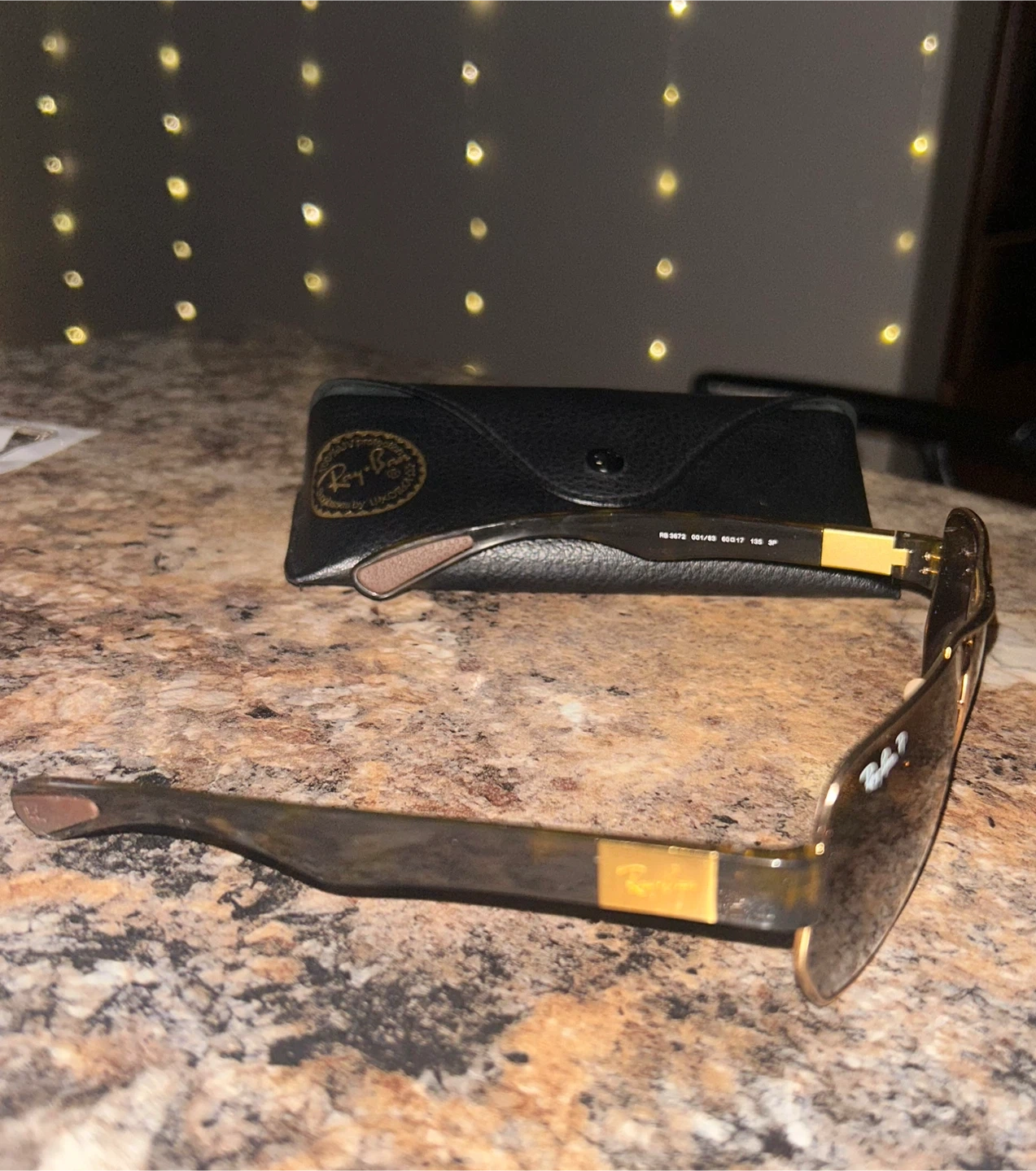 Classic Ray-Ban sunglasses with a tortoise shell frame. Comes with original Ray-Ban case. Model number RB3572. These shades are perfect for sunny days!