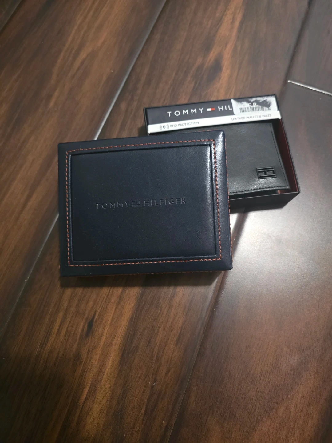 This is a Tommy Hilfiger leather wallet and card holder. It includes RFID protection. It's brand new and comes in its original box.