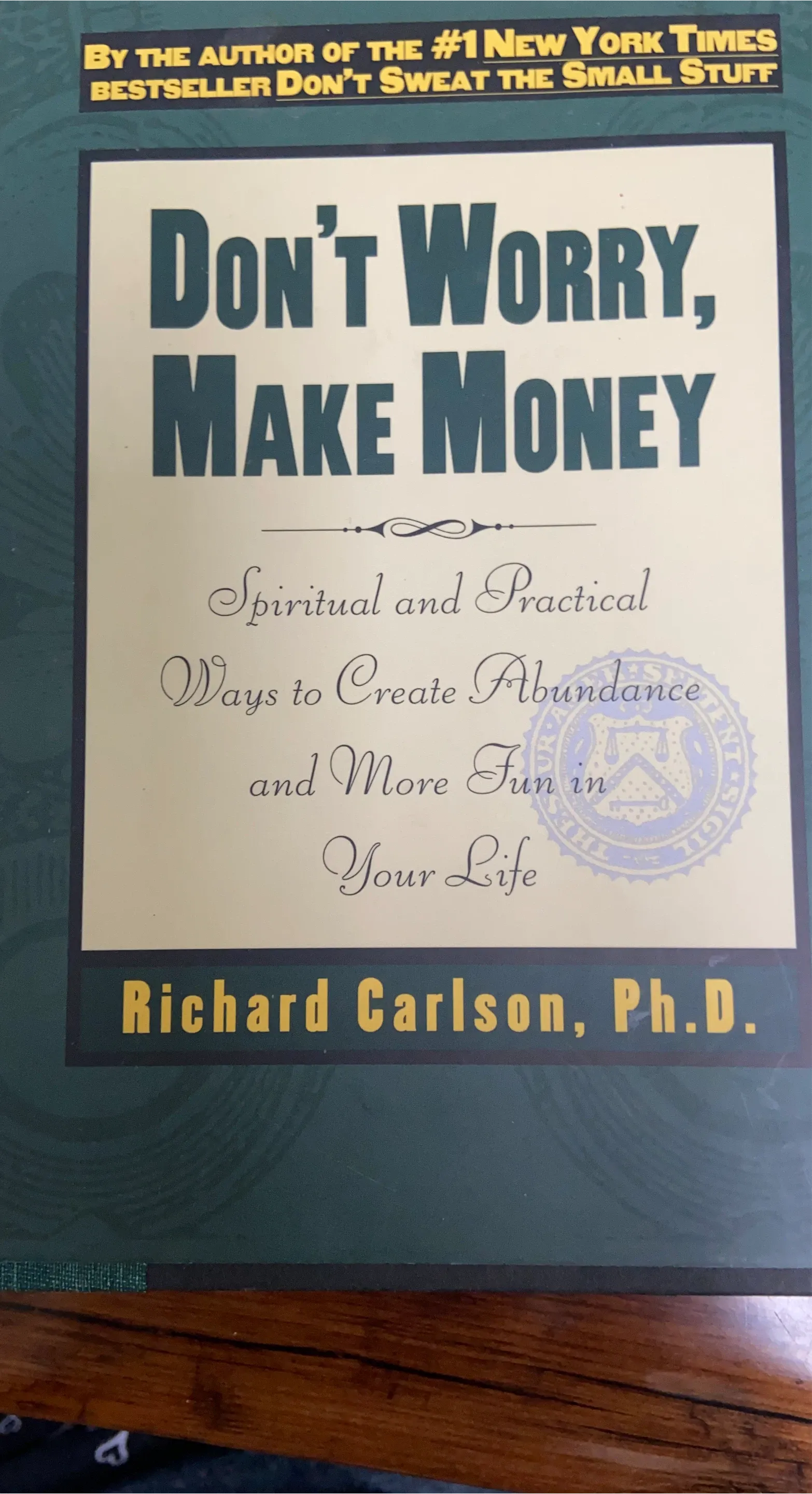 Selling a copy of "Don't Worry, Make Money" by Richard Carlson, Ph.D. It's a spiritual and practical guide to creating abundance and more fun in your life. A great read for anyone looking for a little inspiration!
