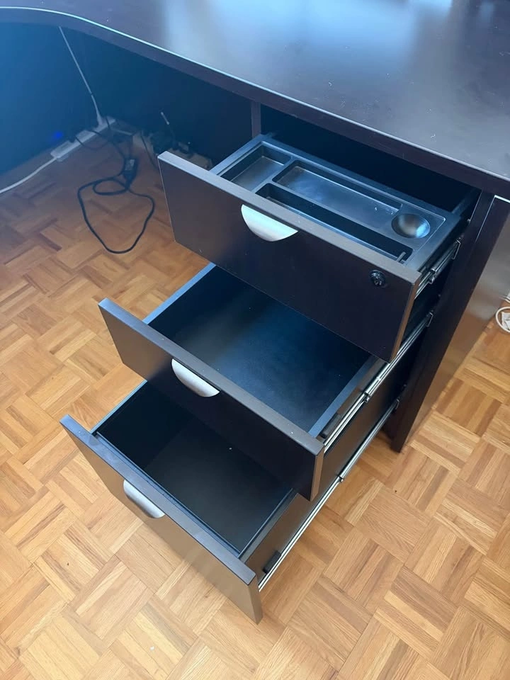 L-shaped Office Desk, Cabinet & Chair