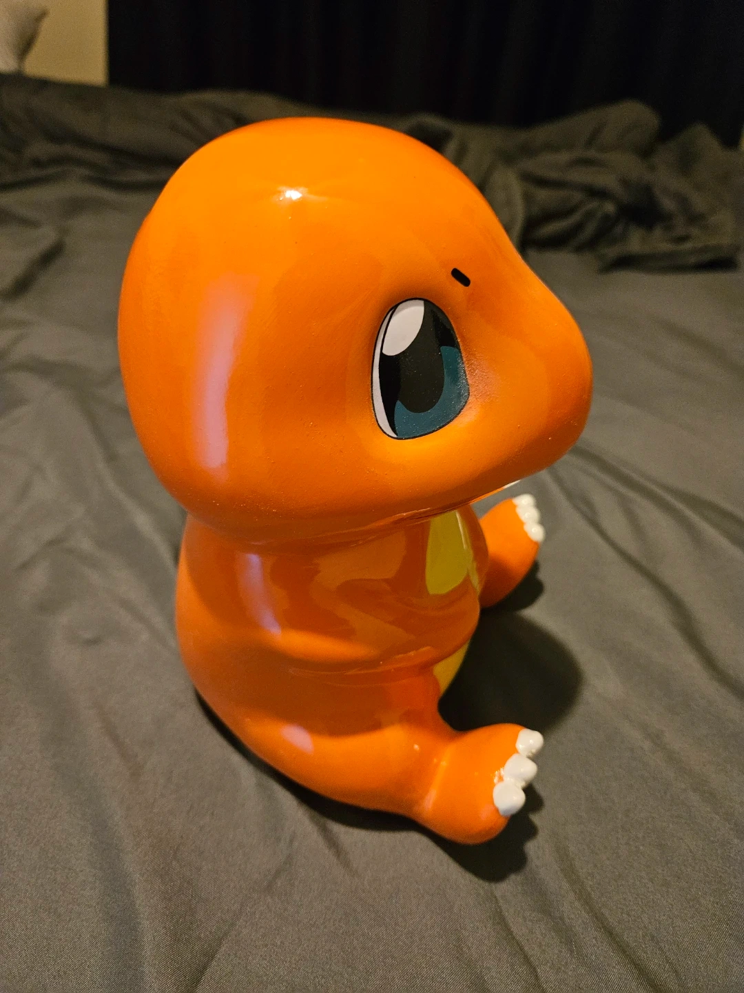 This is a Pokemon Charmander coin bank. It's made of ceramic and features the popular character. It's a fun way for kids to save their change!