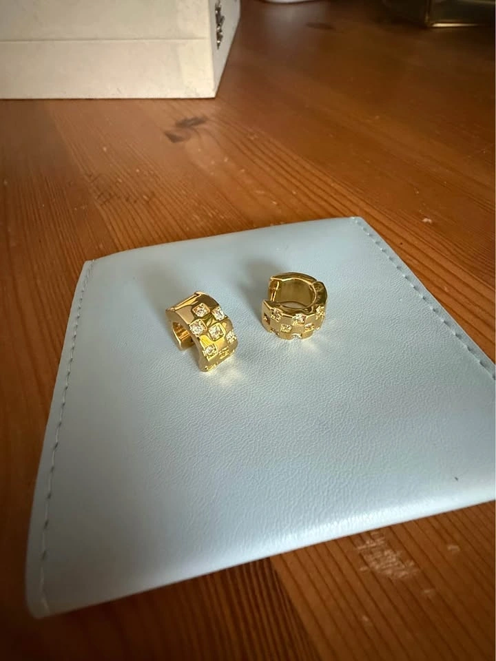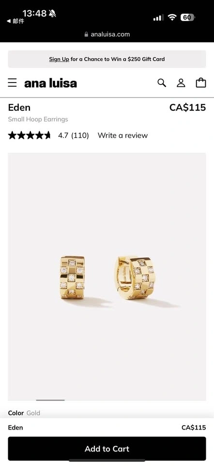 Brand new Ana Luisa Eden small hoop earrings. Contemporary hoops dipped in 14K gold, accented with shimmering cubic zirconia gemstones. Glossy and delicate. Materials: 14K Gold on Brass, Cubic Zirconia. Length: 0.52", Width: 0.52", Depth: 0.11". Weight: 2.80g. Clasp: Hinge. Hoop Diameter: 0.52". Post: Titanium.