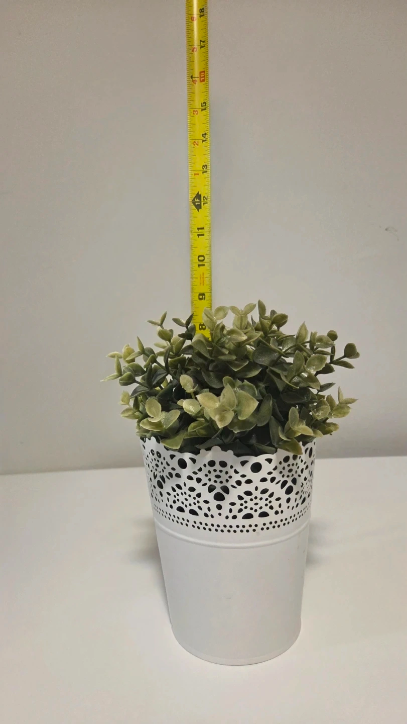 Here's a cute IKEA Skurar artificial plant in a white pot! It's in great condition and measures about 17 inches tall. The pot itself is about 4 1/4 inches in diameter. It's a nice little touch of greenery for any space