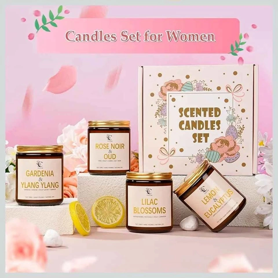 Brand New 4-pack scented candle gift set made with 100% soy wax and cotton wicks. Perfect for home décor, relaxation, aromatherapy, or gifting.