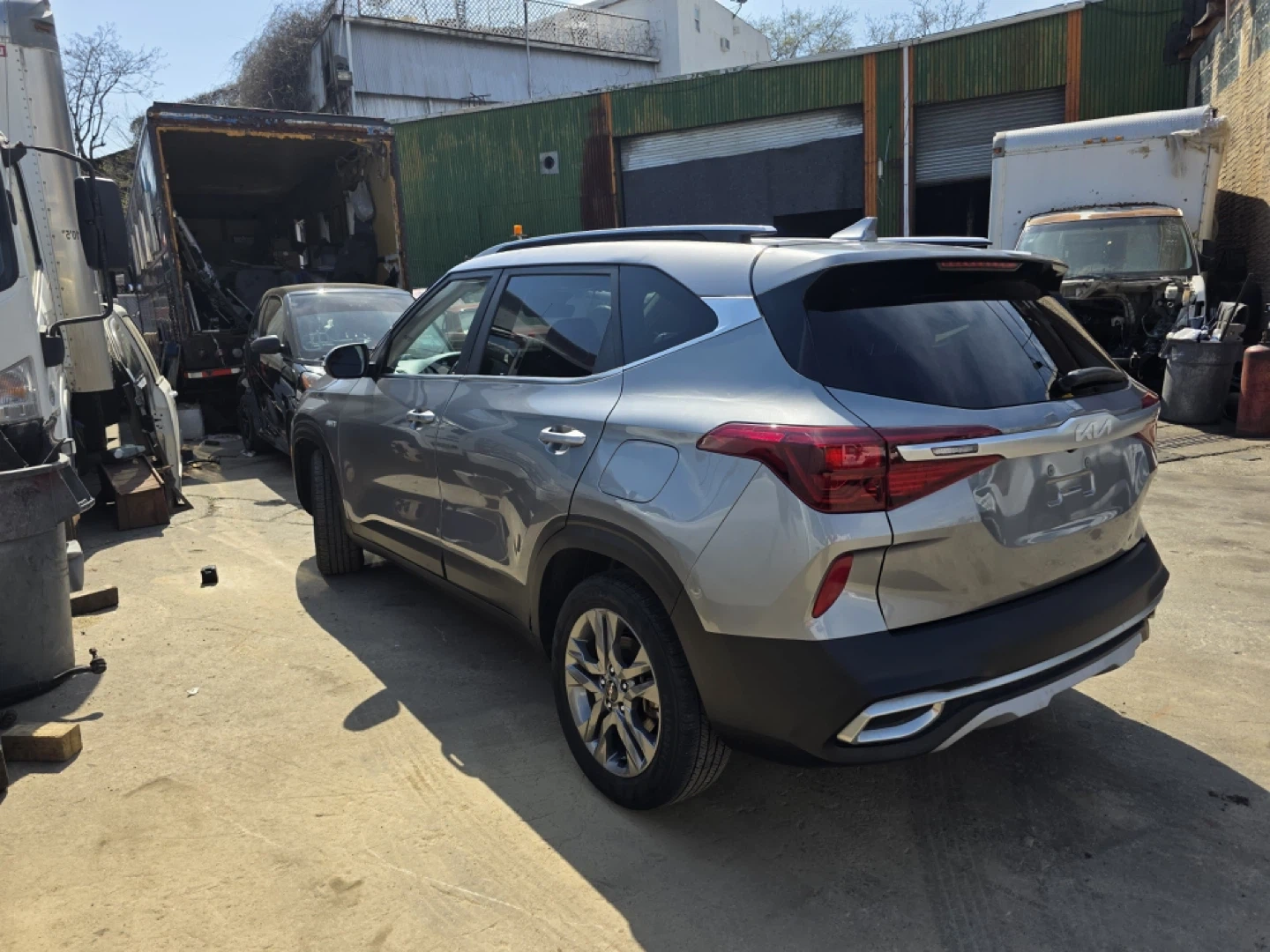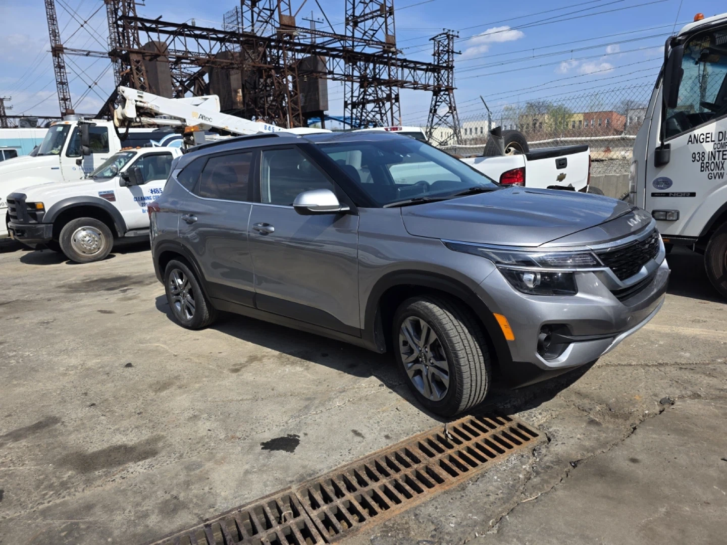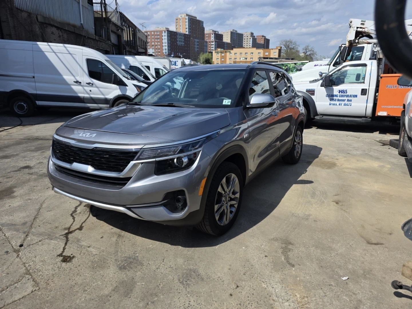 Silver 2022 Kia Seltos SUV. Cloth interior, navigation, seat heat. Low mileage and well-maintained. This compact SUV offers a comfortable ride and practical cargo space.