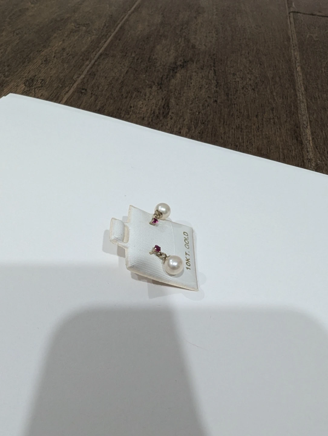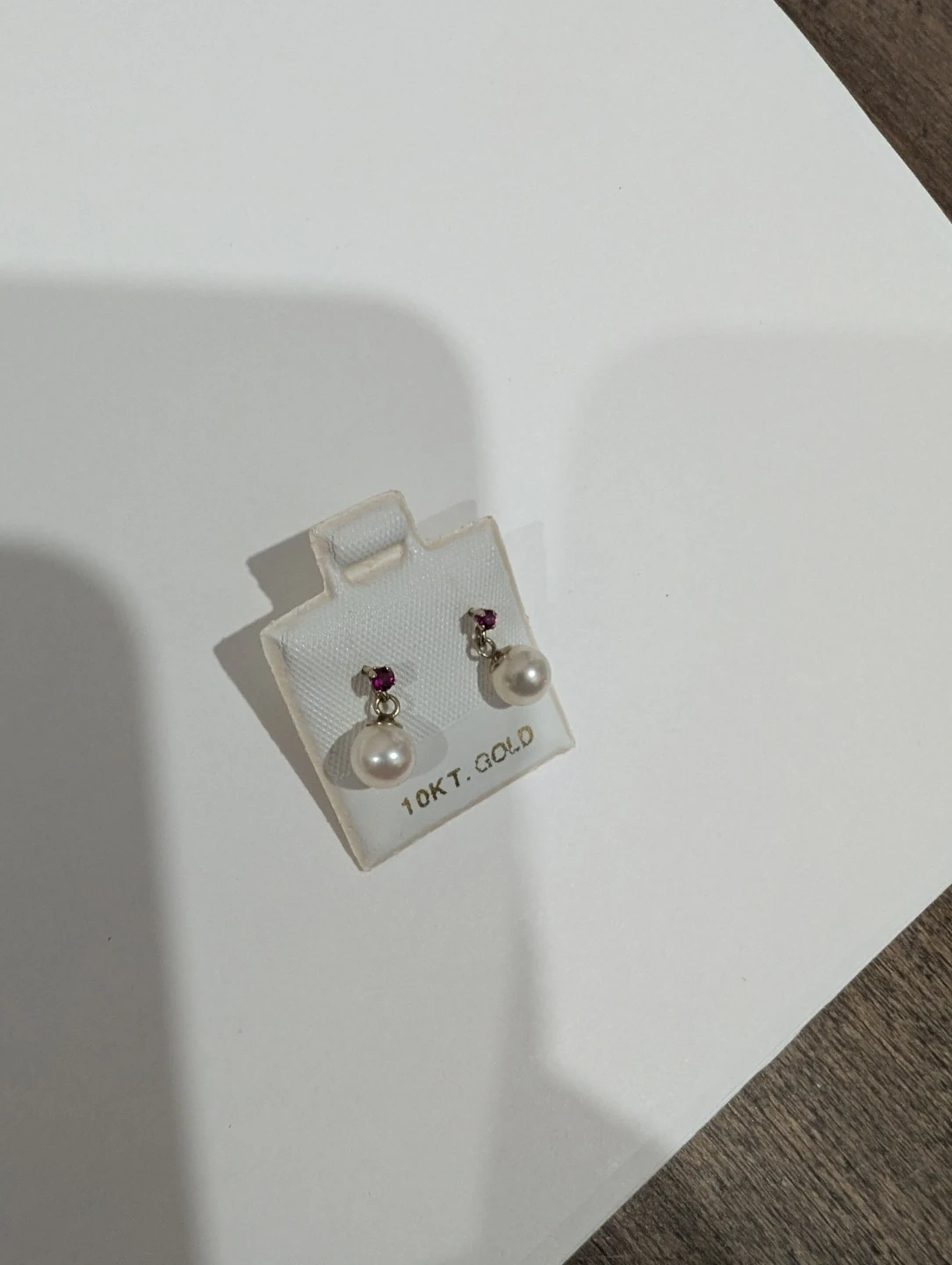 Brand new 10kt yellow gold fresh water pearl and Ruby drop earrings for sale. Natural genuine pearls and ruby, June and July birthstone, made in Canada, $170 FIRM.
