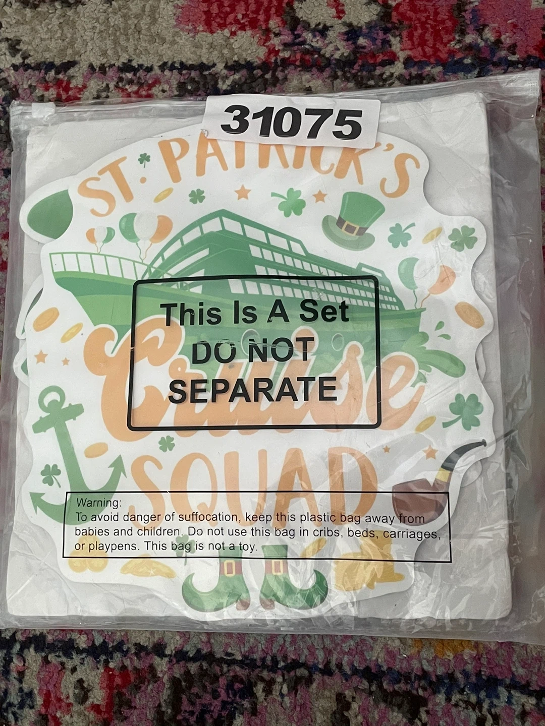 This is a set of St. Patrick's Day party decorations, featuring a cruise ship theme. These are fun decals to add to your celebration. Perfect for decorating your home or party space for St. Paddy's Day!