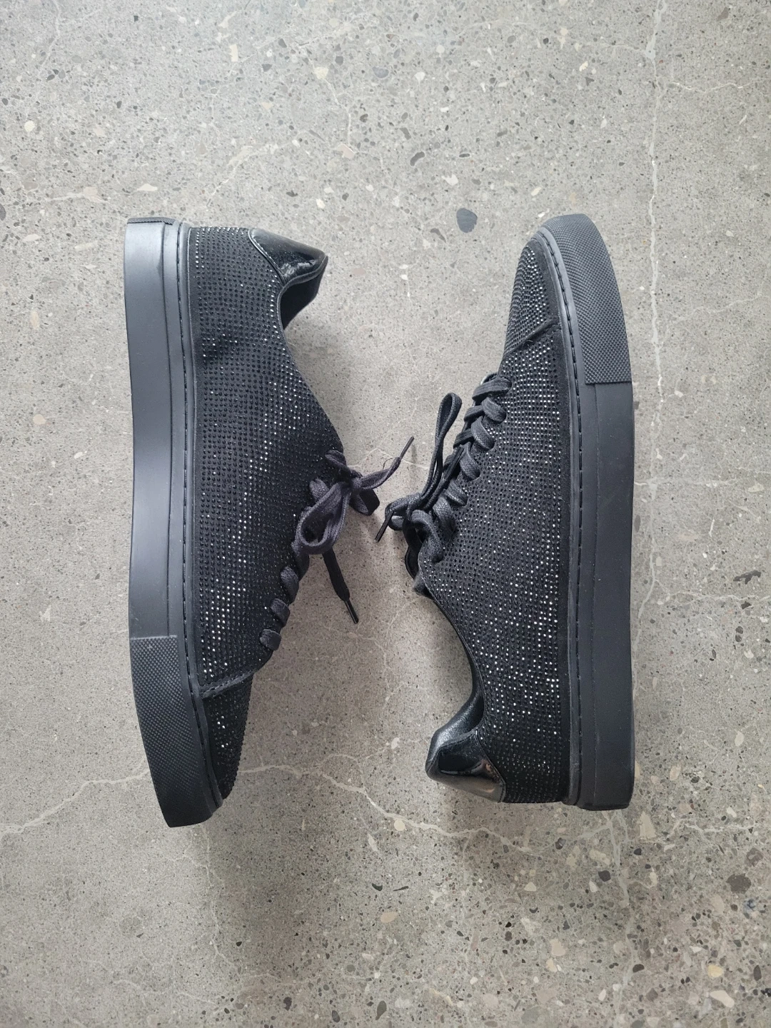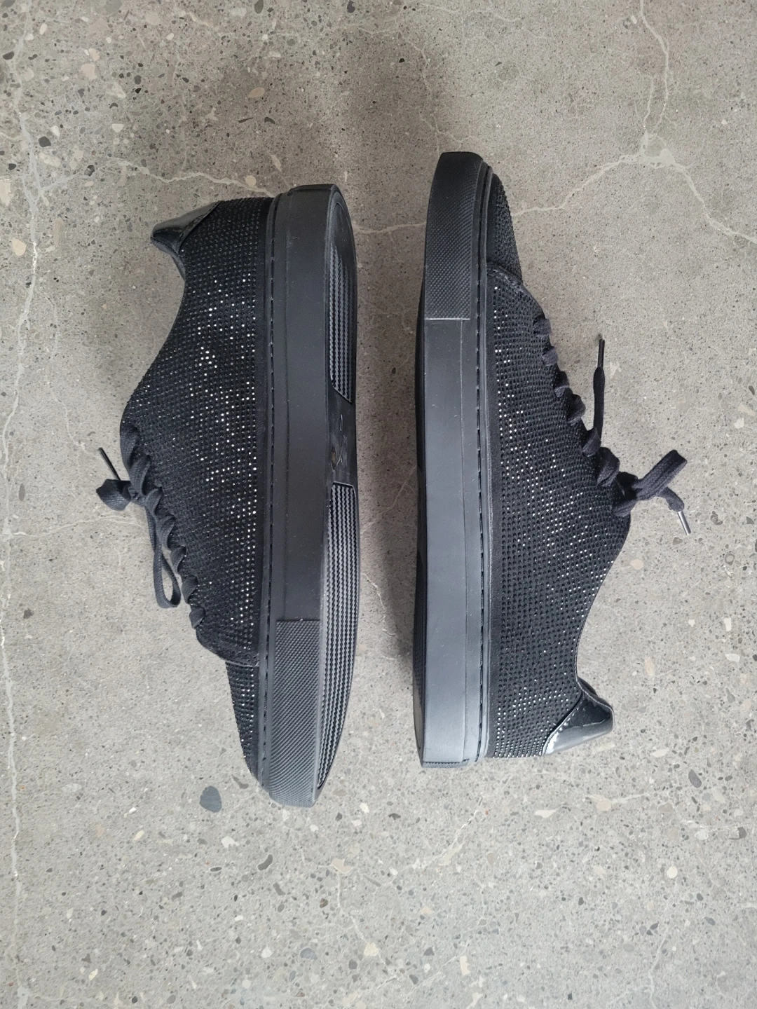 These MIX NO. 6 mens sneakers feature a dazzling black rhinestone upper. They have a lace-up closure and a comfortable, solid sole.
