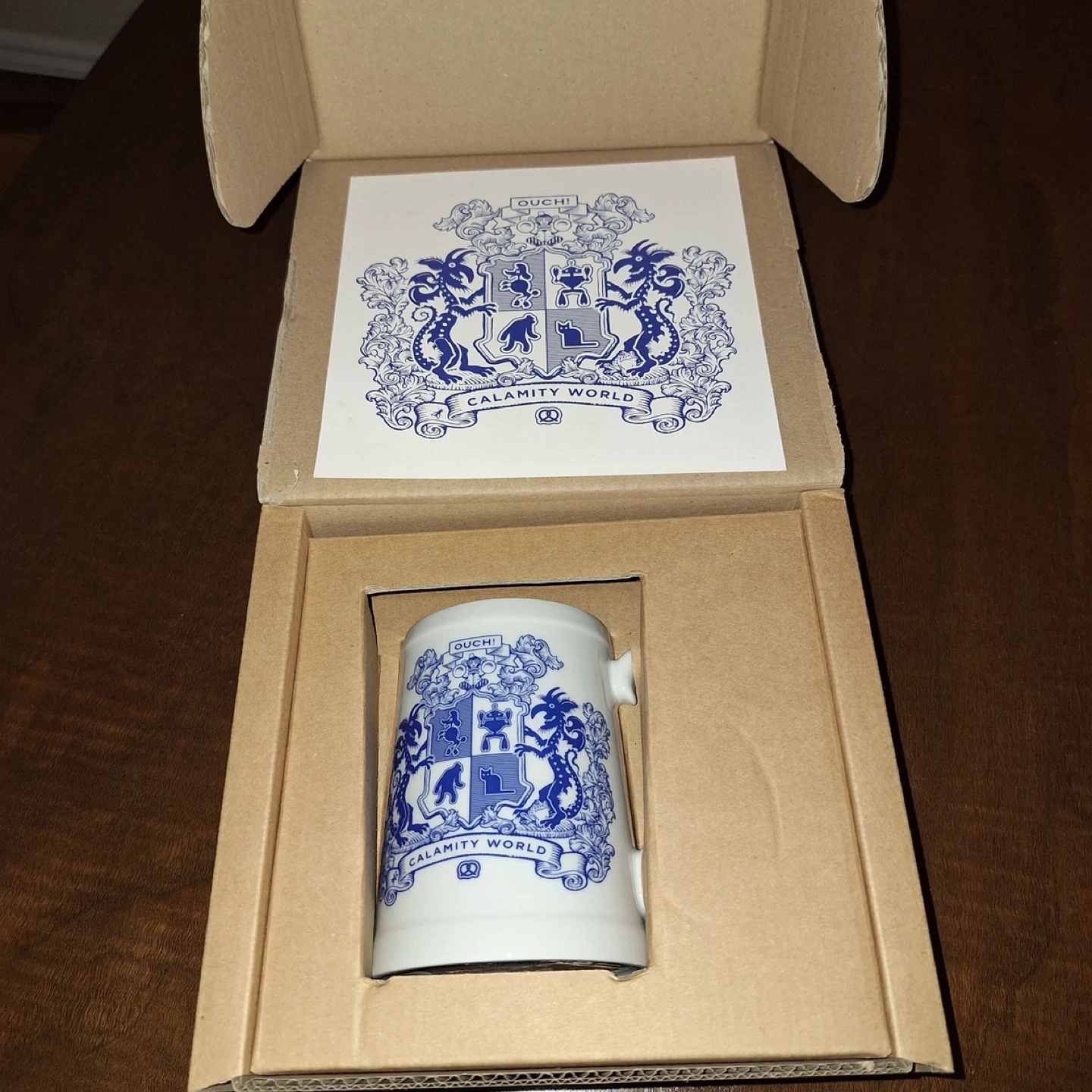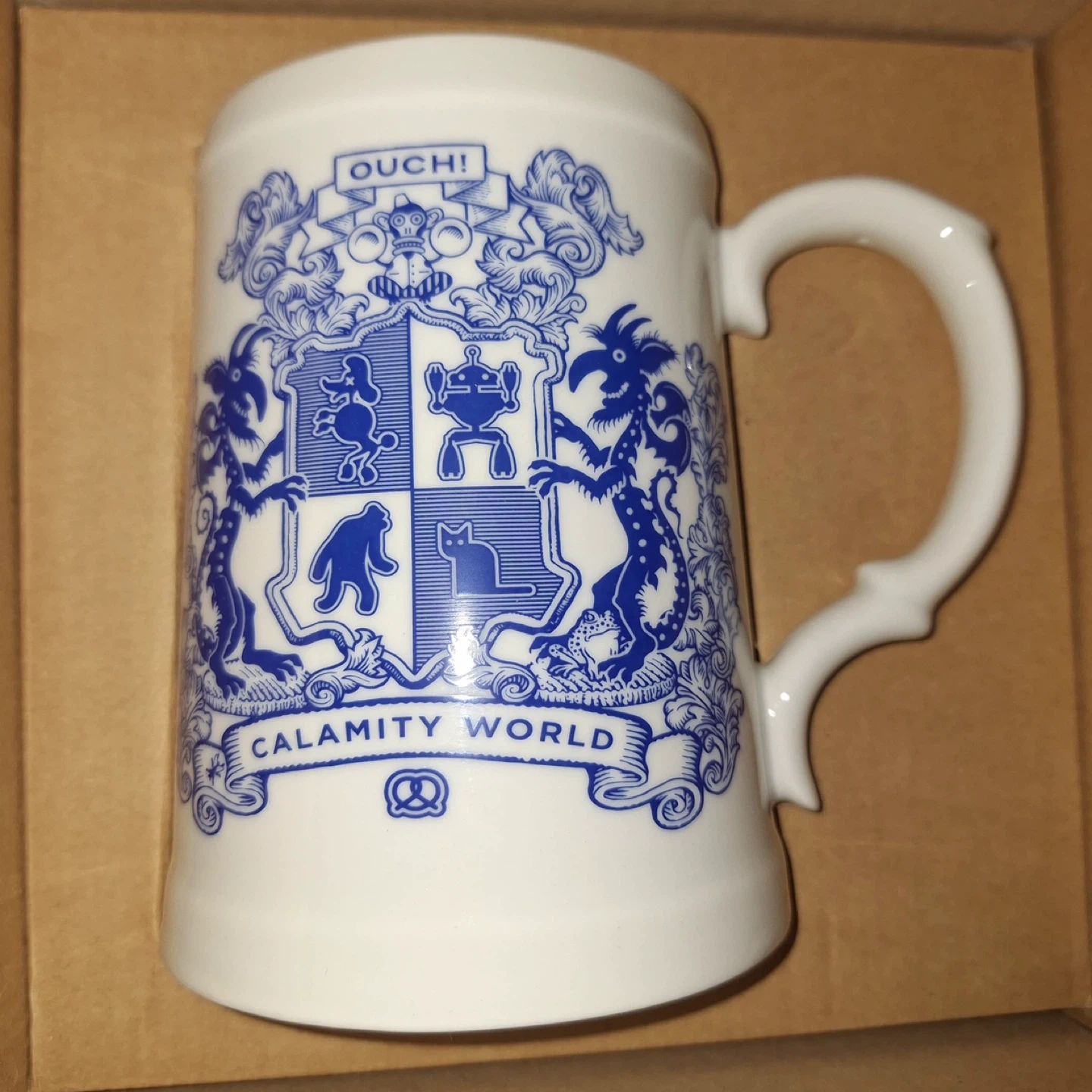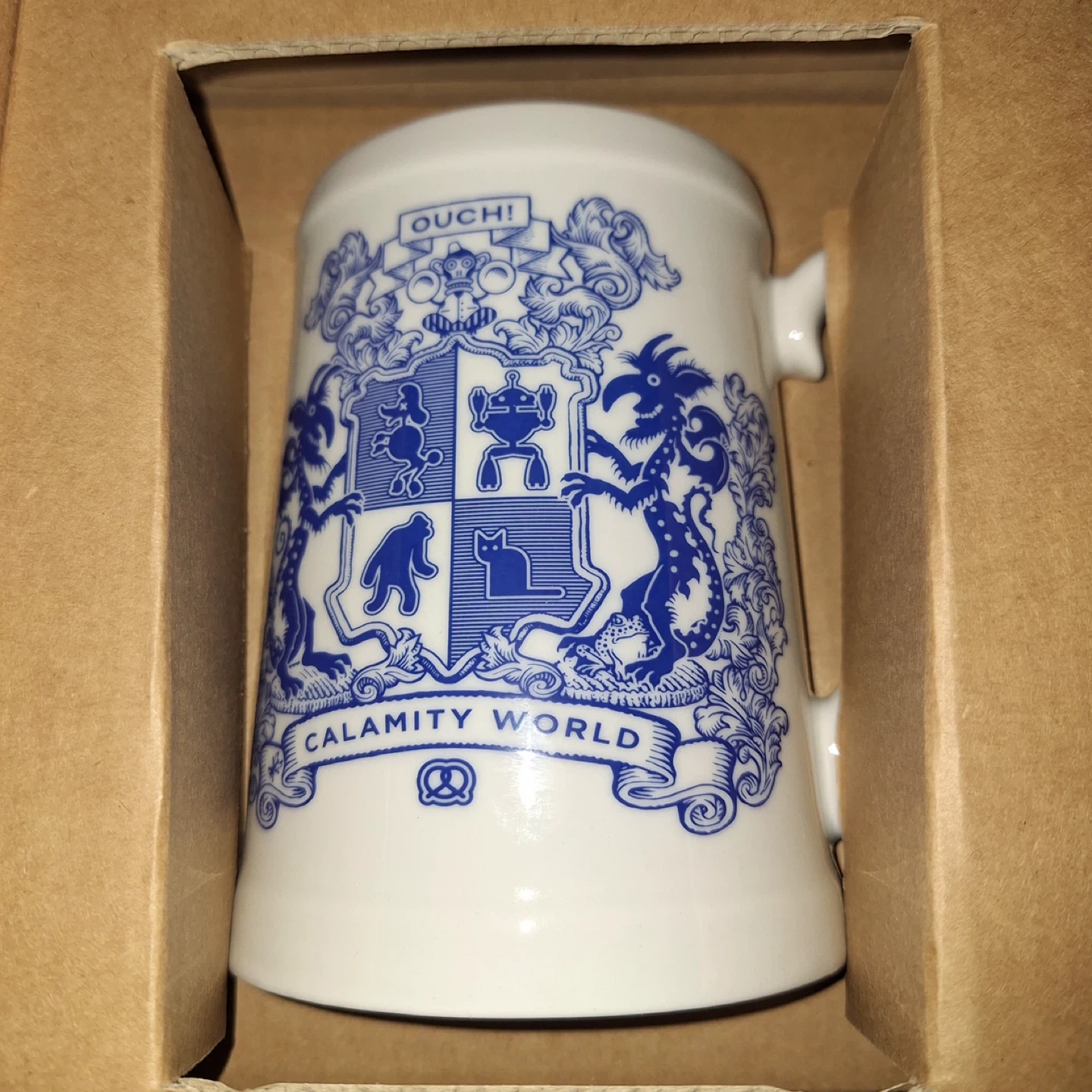 This beer stein holds 20 ounces (591 ml). It's made of fine porcelain and is microwave and dishwasher safe. Produced and decorated by skilled craftspeople. Still in original packaging never used