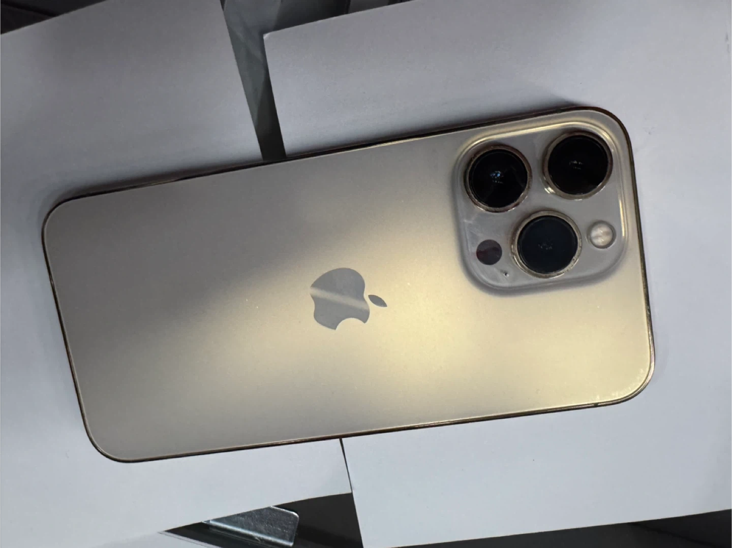 This is an Apple iPhone 14 Pro in gold. It's a powerful smartphone with a great camera system. Includes original box