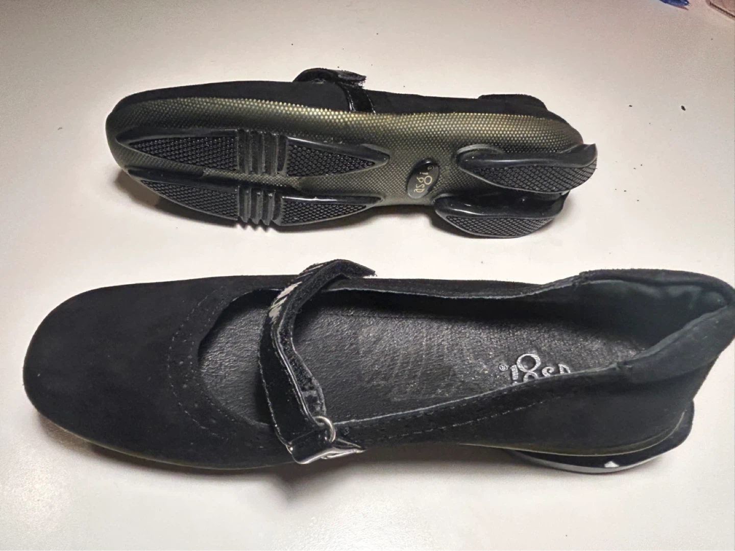 Style: Mary Jane, with adjustable patent leather Velcro strap.