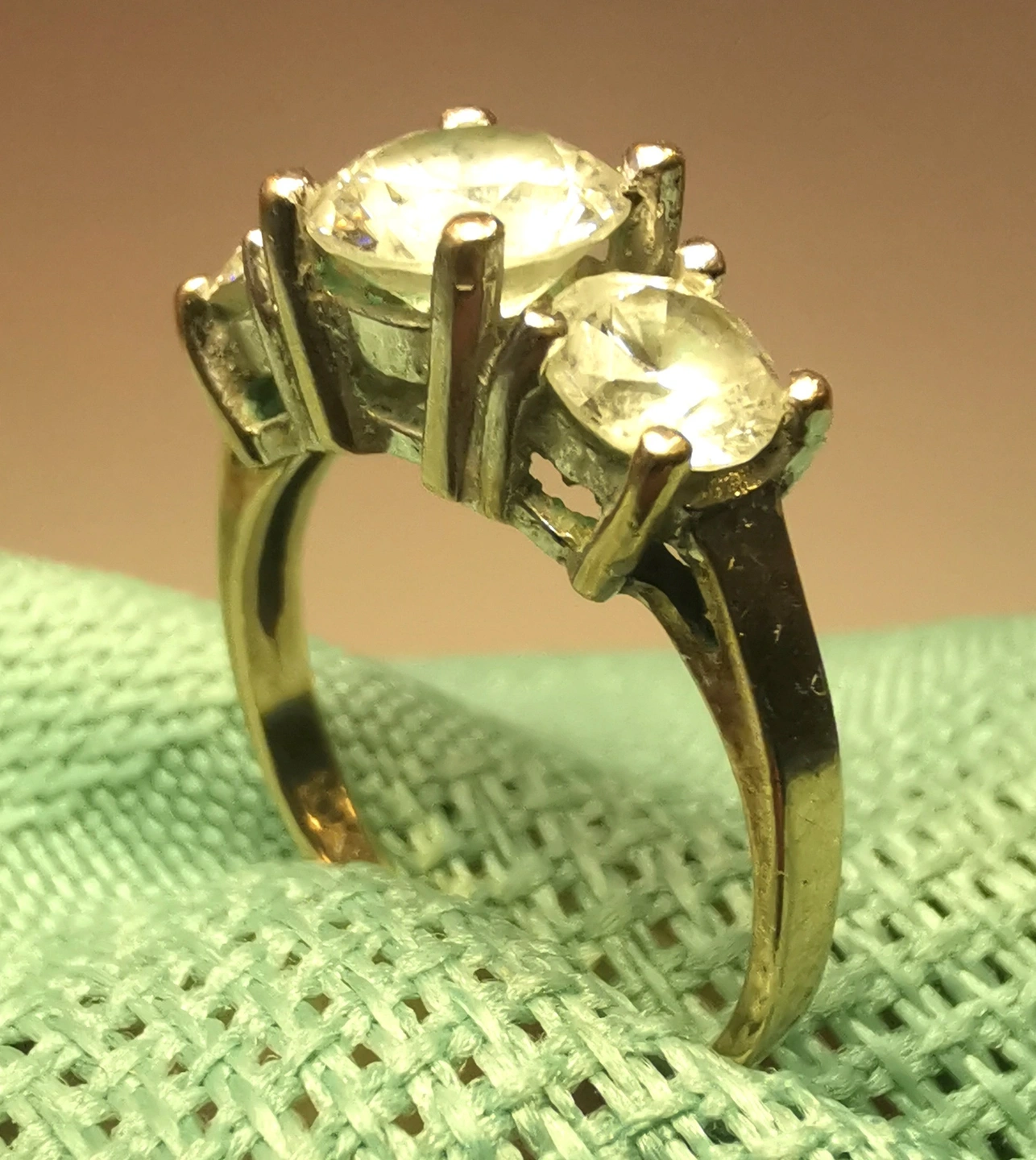 1980s S.L. Osborne 10K Yellow Gold 3-Stone Trilogy Ring Size 4