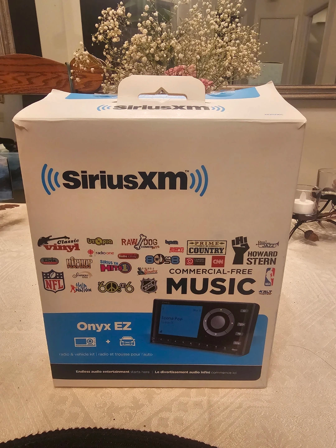 This SiriusXM Onyx EZ is a commercial-free music receiver and comes with a vehicle kit. It's designed for endless audio entertainment on the go. Brand new in box.