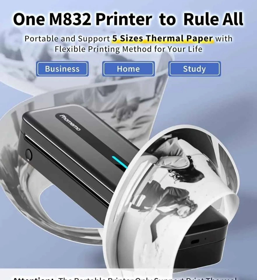 Like New Phomemo M08F Wireless Portable Printer. Looking for a compact, ink-free printing solution? This Phomemo M08F is perfect for students, business professionals, and travelers. It fits easily in a backpack and prints high-quality documents on the go. Key Features: Ink-Free Printing: Uses thermal technology, so you never have to worry about expensive ink or toner. Multi-Size Support: Compatible with US Letter, A4, and smaller thermal paper sizes. Universal Connectivity: Bluetooth: Connect seamlessly to your Smartphone or Tablet (Android/iOS). USB Wired: Connect via the included USB cable to your Laptop or PC (Windows, macOS, ChromeOS, Linux). Highly Portable: Sleek, lightweight design for "anywhere" printing. What’s Included: 1x Phomemo M08F Portable Printer. 1x Premium Protective Carrying Case (with handle). 1x USB Connection/Charging Cable (for Laptop & Phone charging). Note: Thermal paper is NOT included. Condition: Excellent / Working perfectly.